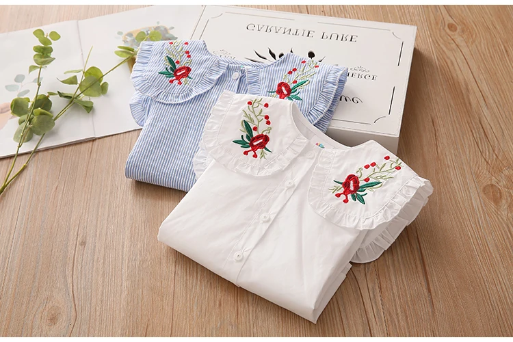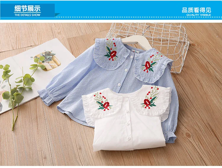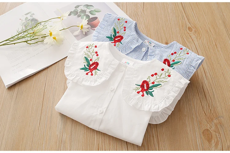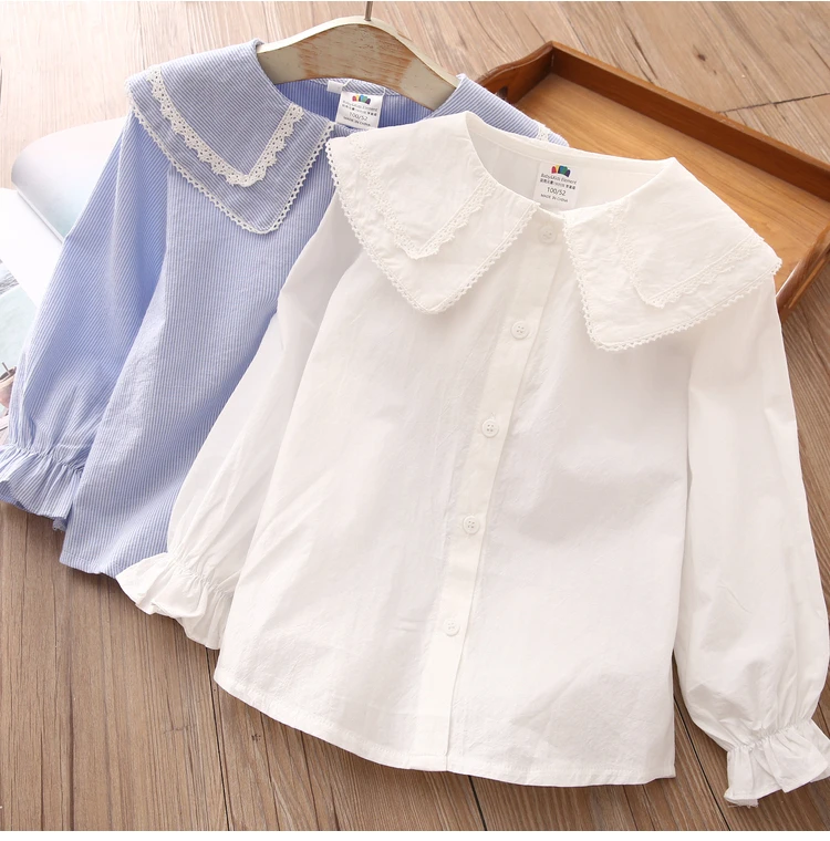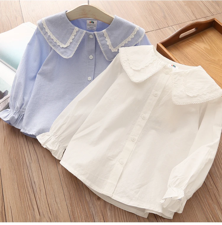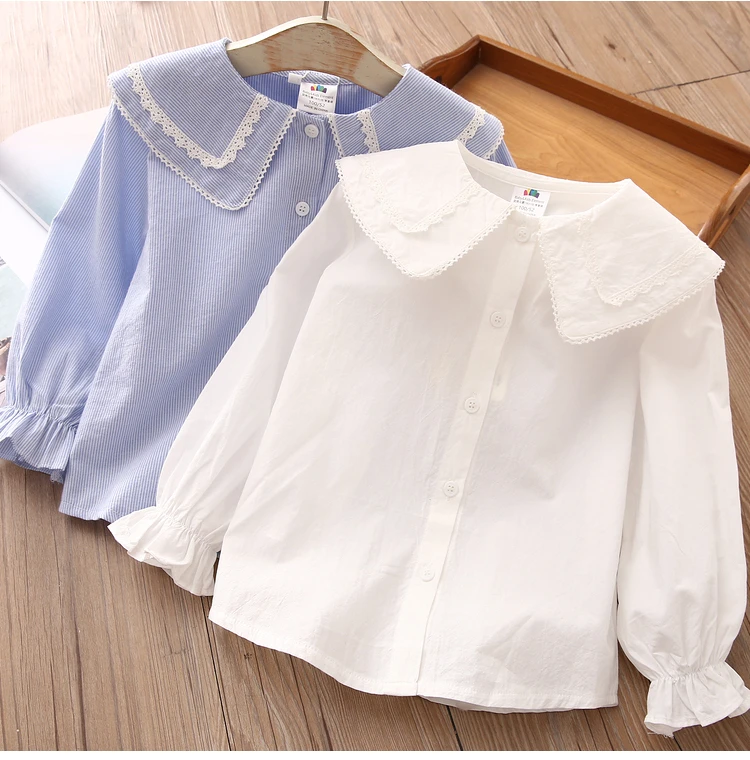 Children Clothing 2022 New Spring Autumn 2 3 4 6 8 10Years Child Turn-Down Neck Tops Kids Baby Girls Long Sleeve Blouse Shirt