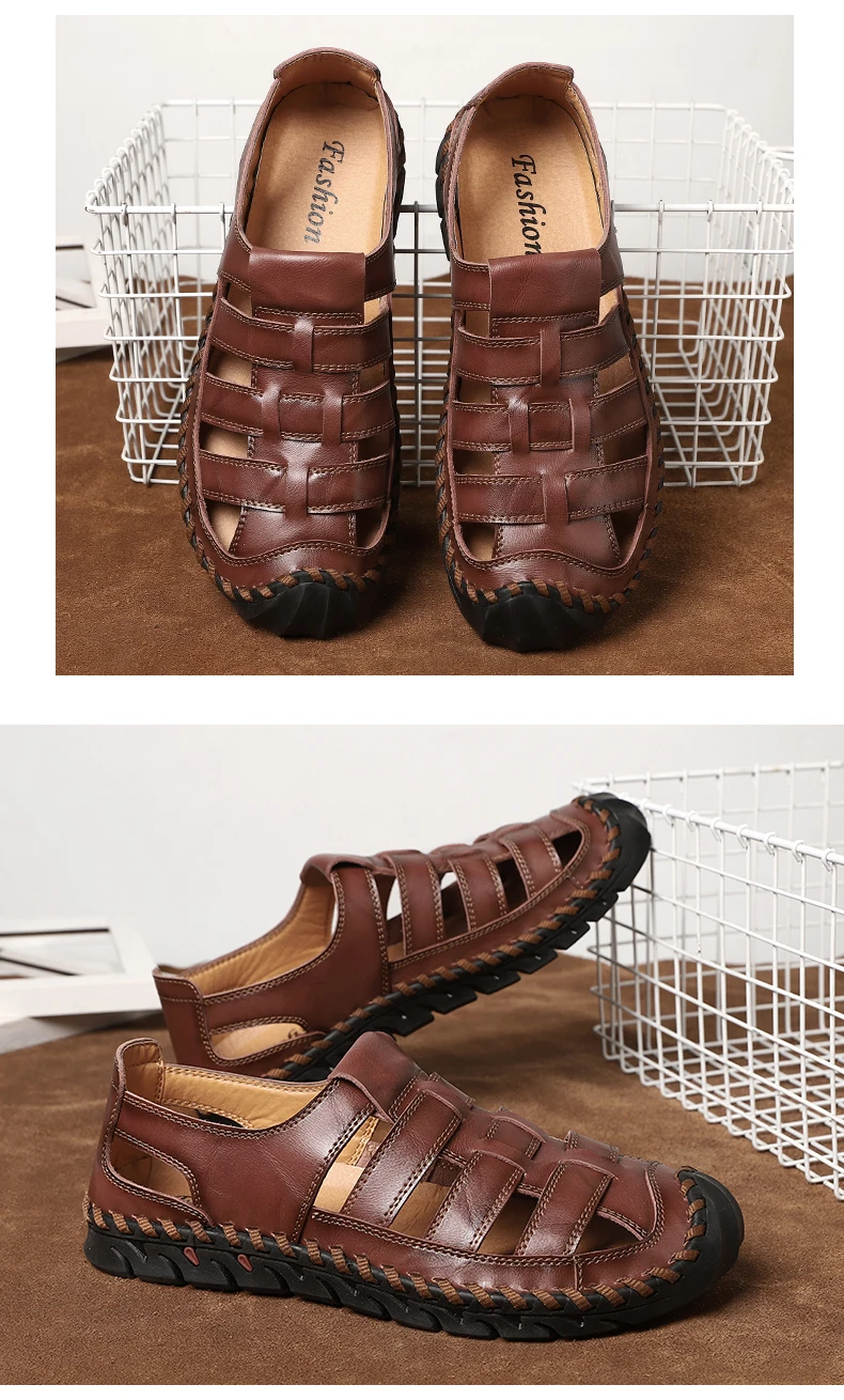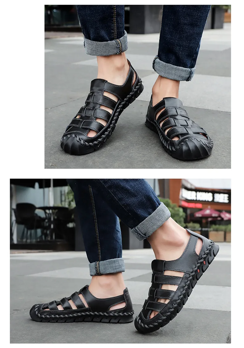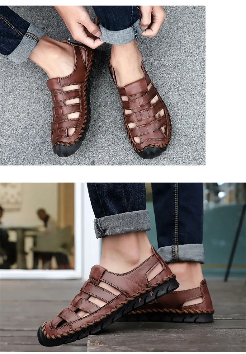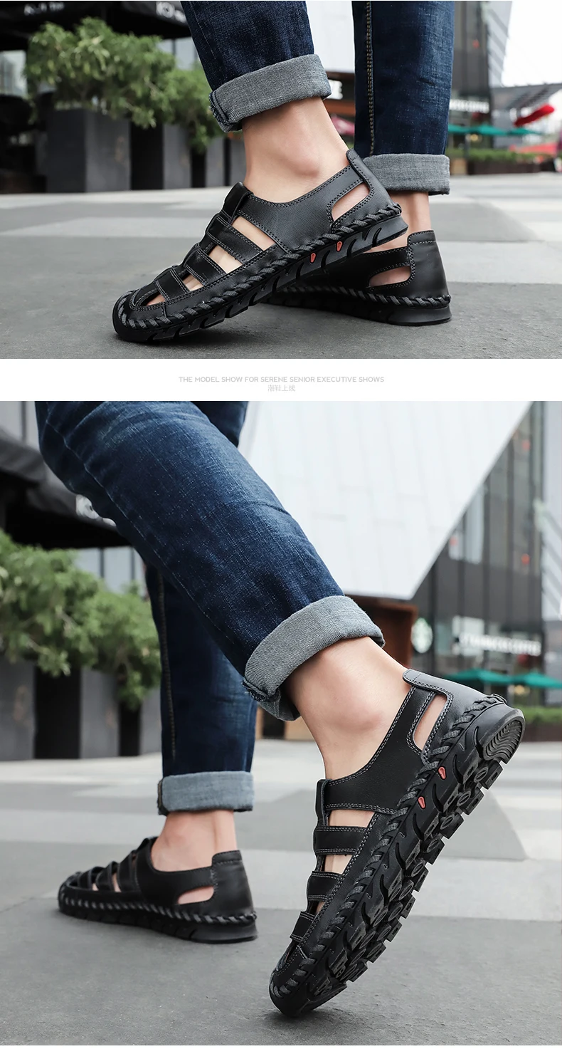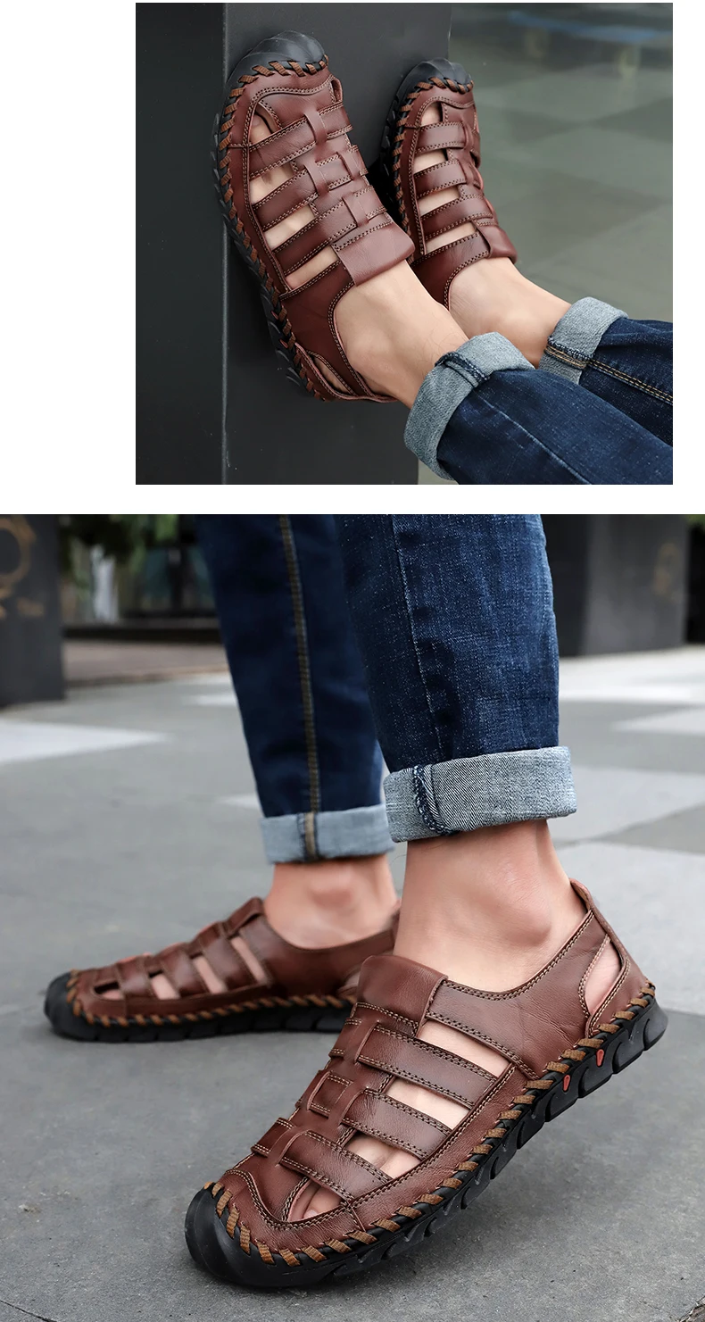 Beach sandals: High Quality Men Sandals Fashion Genuine Leather