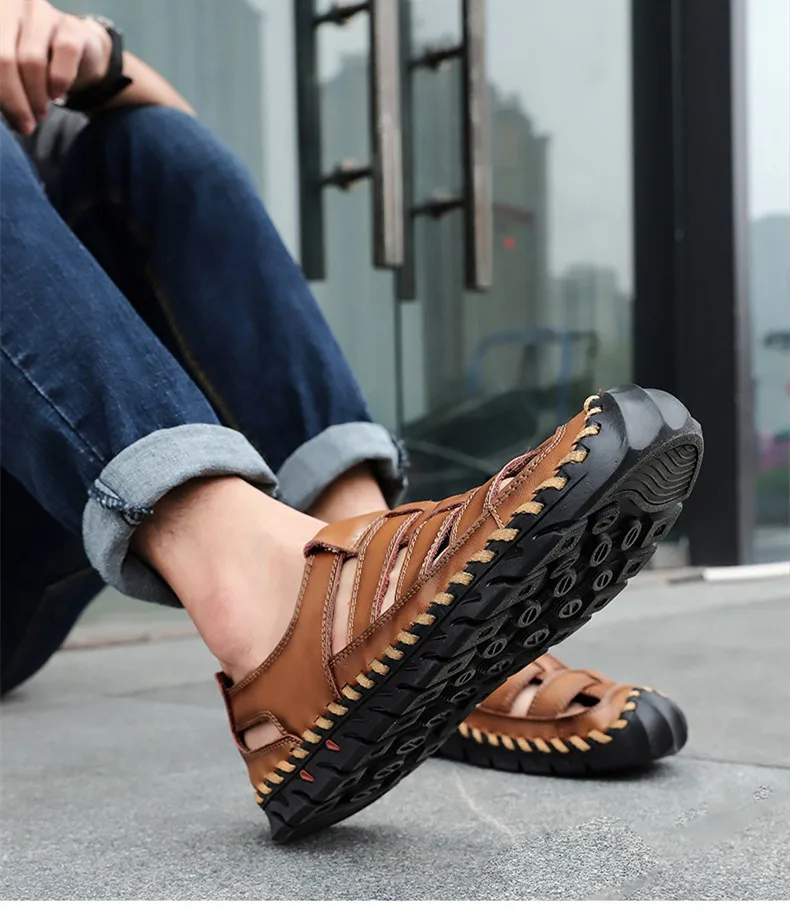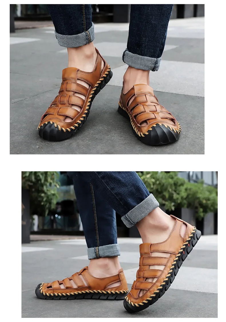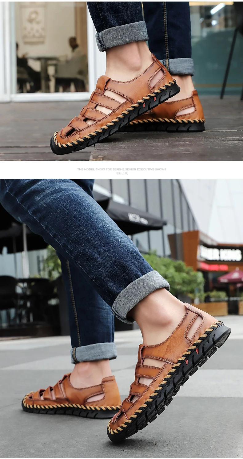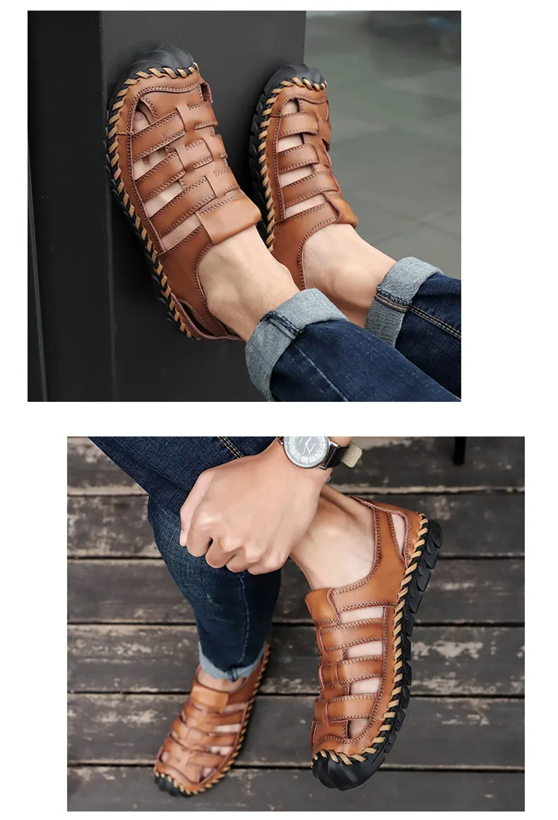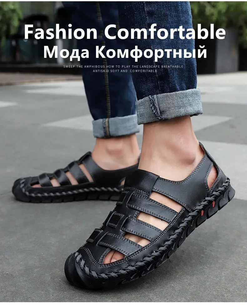 Beach sandals: High Quality Men Sandals Fashion Genuine Leather