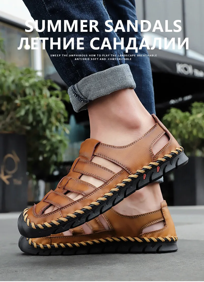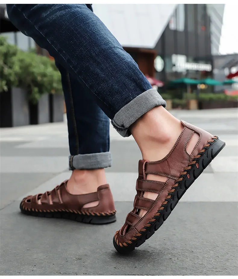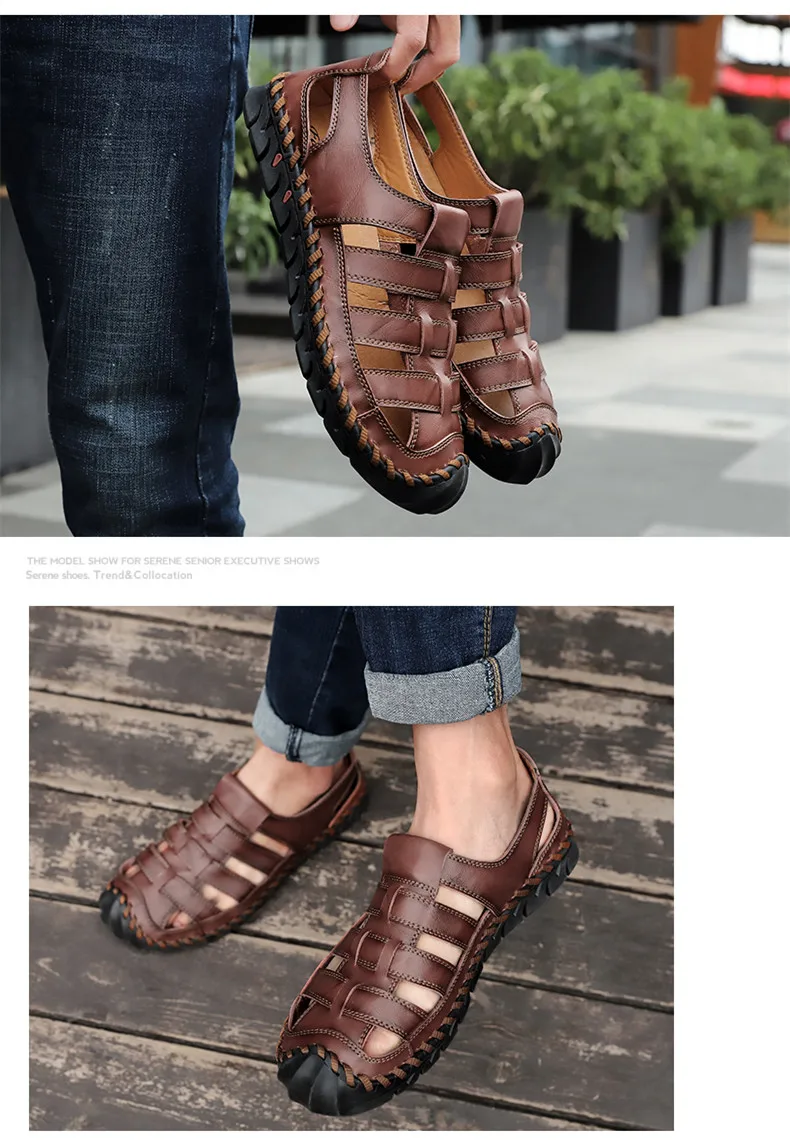 Classic Men's Sandals Summer Soft Sandals Luxury Men Shoes Genuine Leather Sandals Brand Big Size Soft Outdoor Men Roman Sandals