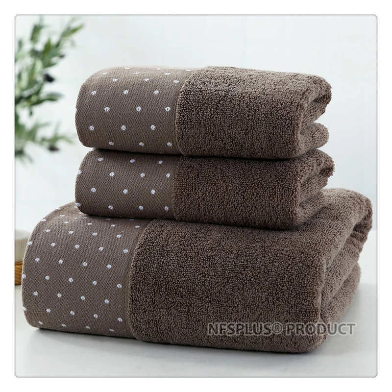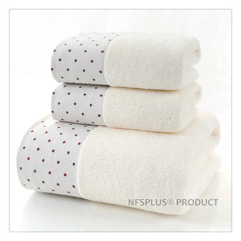 Cotton Bath Towel Set for Bathroom 2 Hand Face Towels 1 Bath Towel for Adult White Brown Grey Terry Washcloth Travel Sport Towel