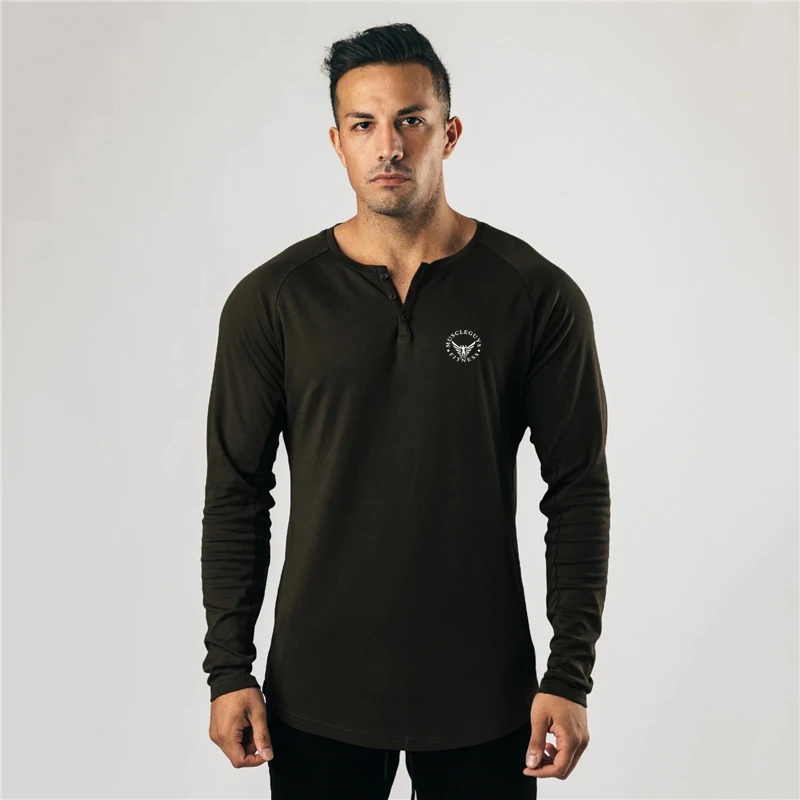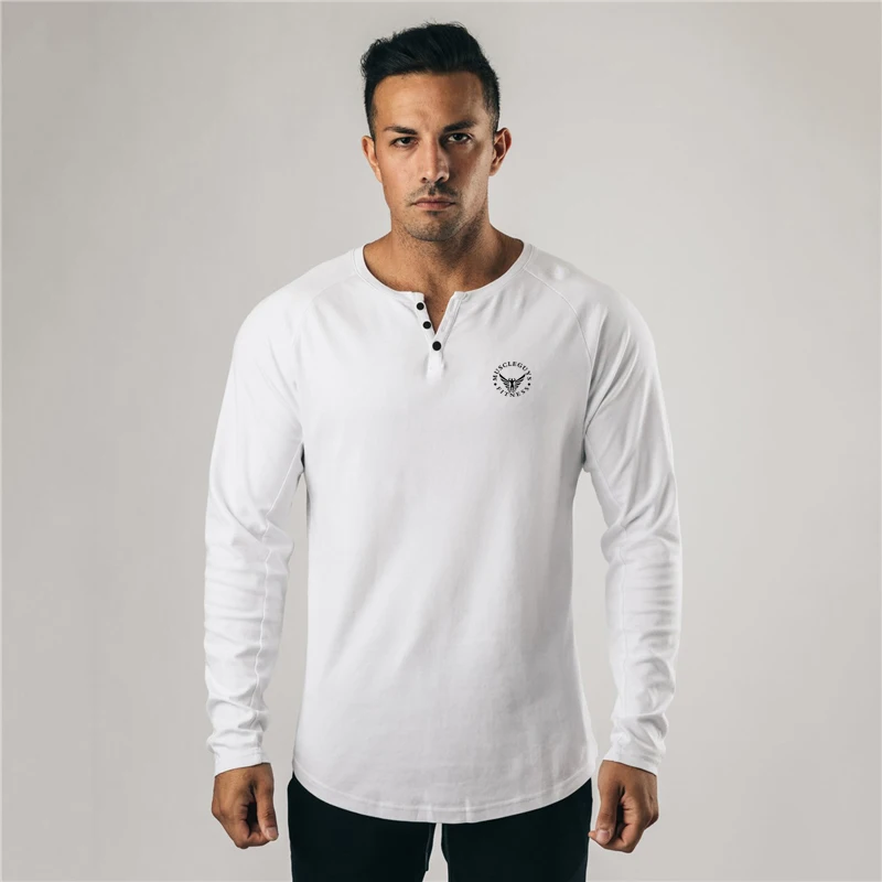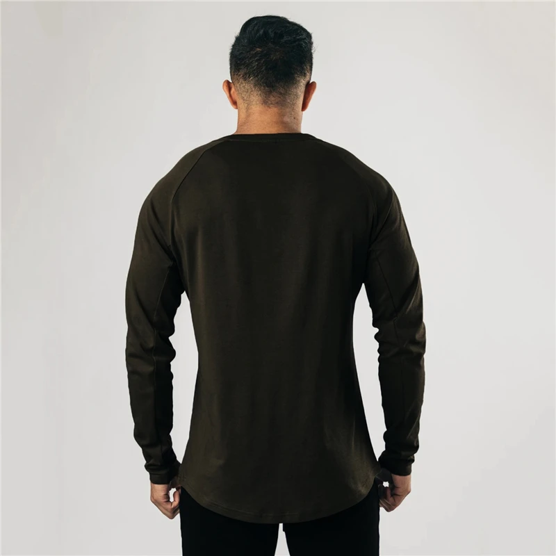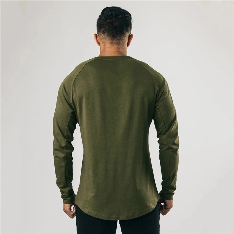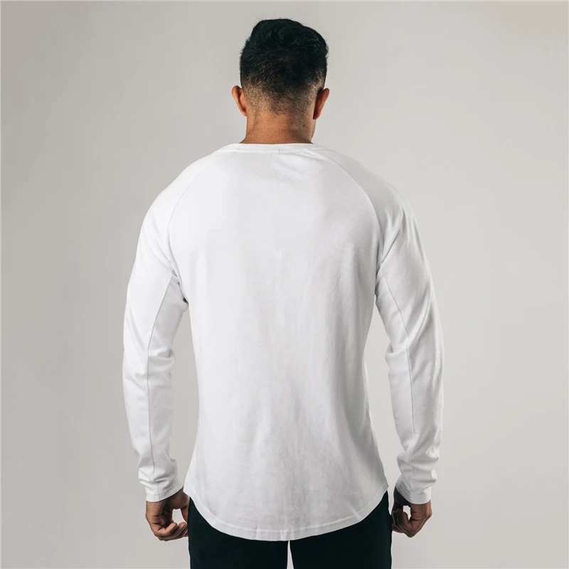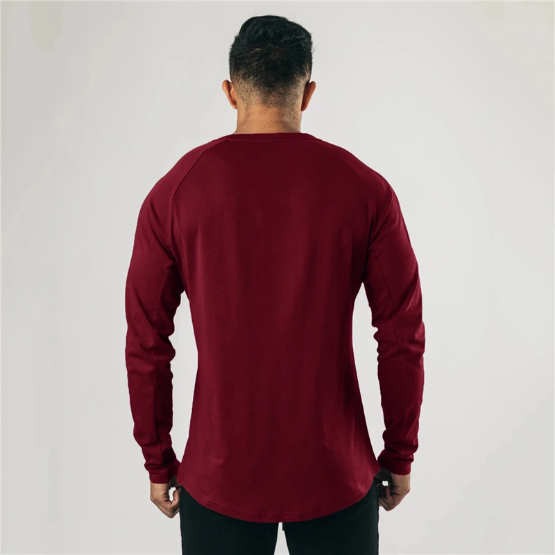 Cotton Casual Long Sleeve T-shirt Men Gym Bodybuilding Fitness Workout Slim T Shirt Male Solid Tee Tops Sport Training Clothing