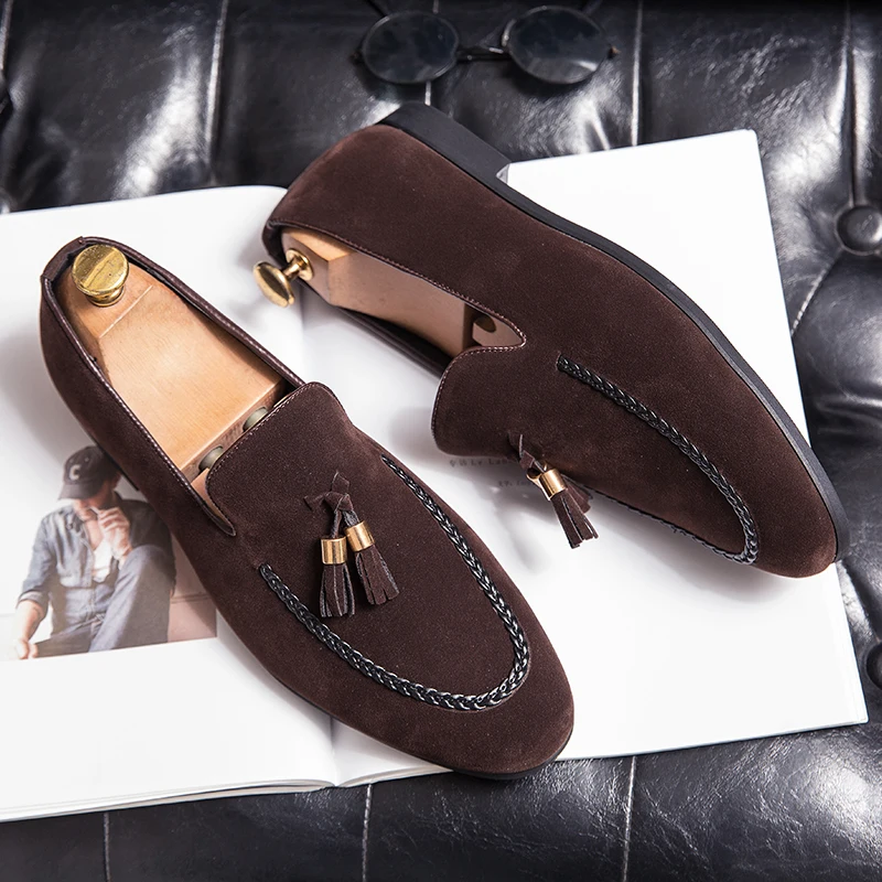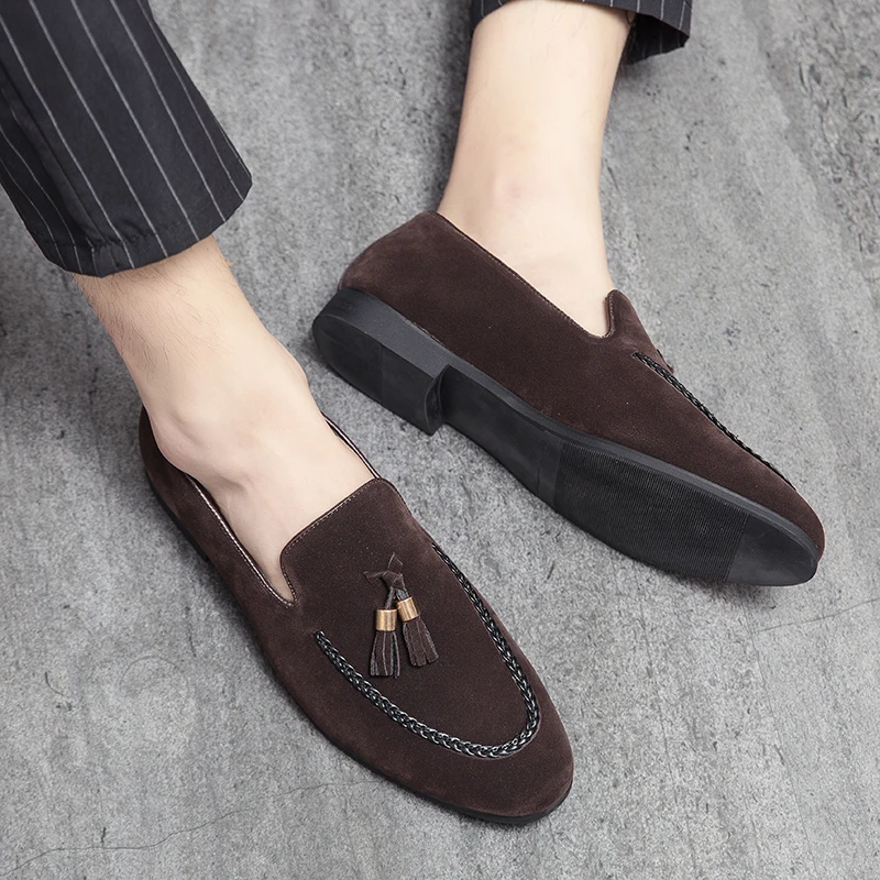 Designer 2022New Mens Leather Casual Shoes for Men Tassel Loafers Comfortable Black Brown Moccasins suede mens shoes mocasines