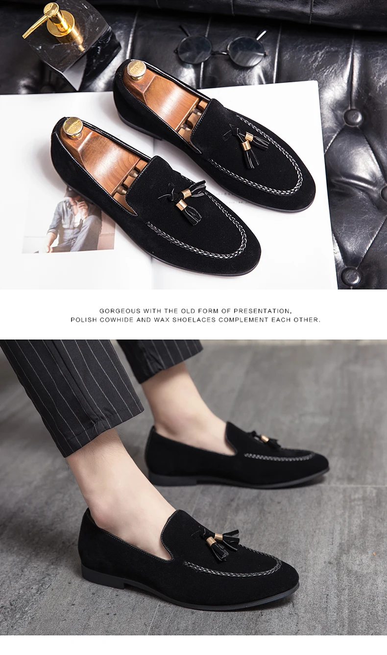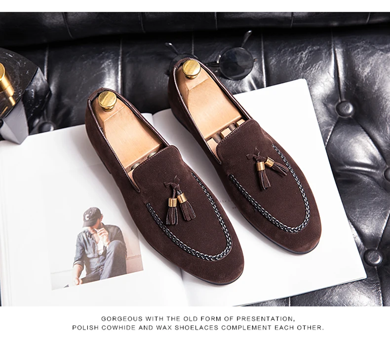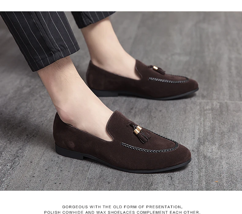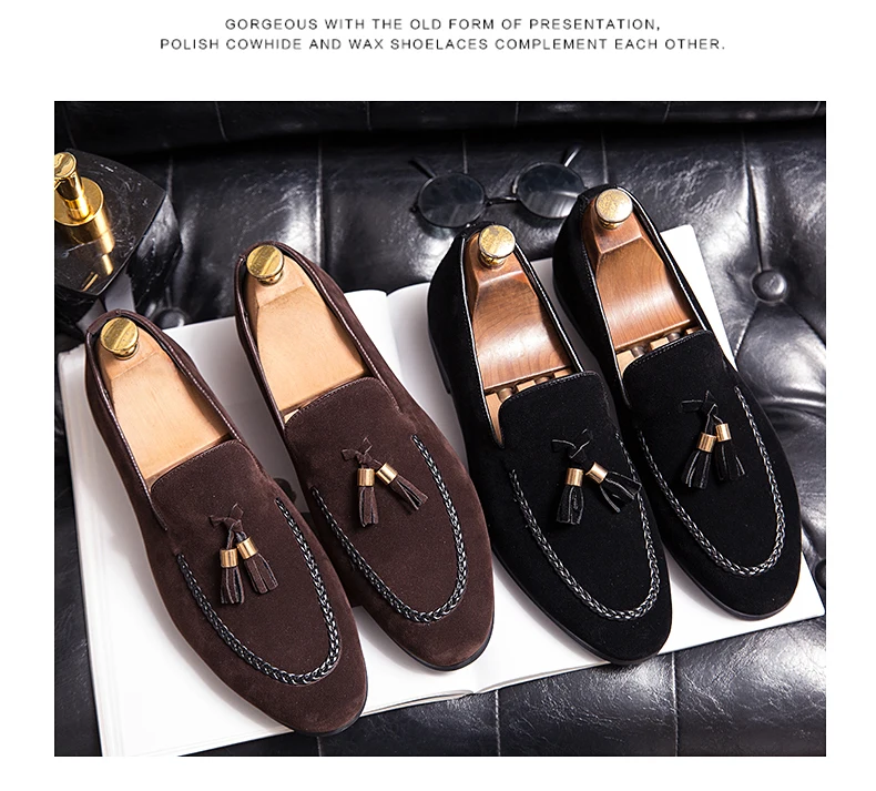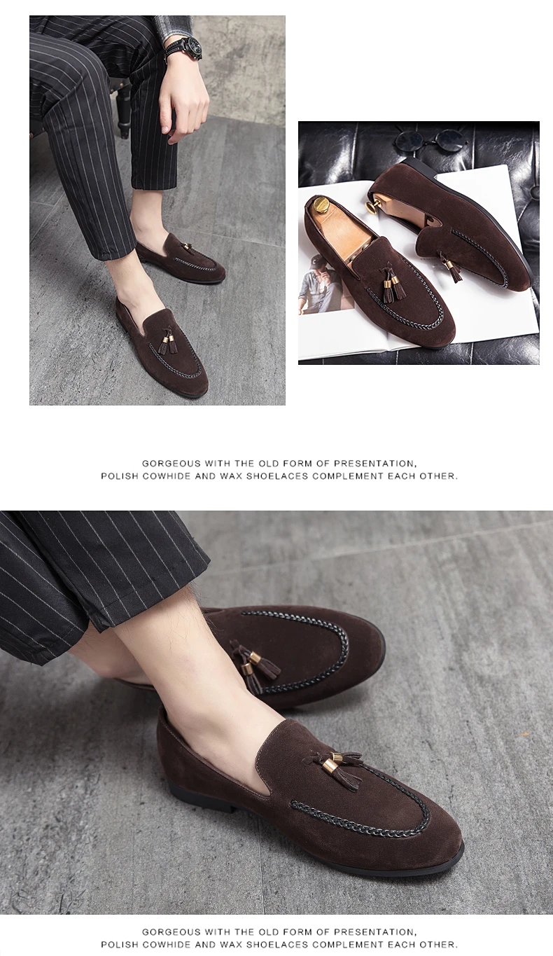 Designer New Mens Leather Casual Shoes Formal Brogue Shoes for Men Tassel Loafers Large Size Comfortable Black Brown Moccasins