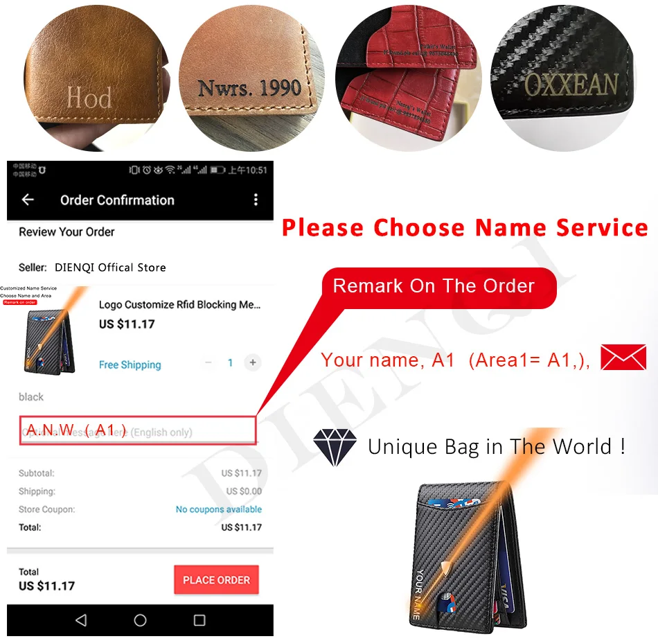 1. Please give us your name within 24 hours or we will add the receiver name on the wallet.