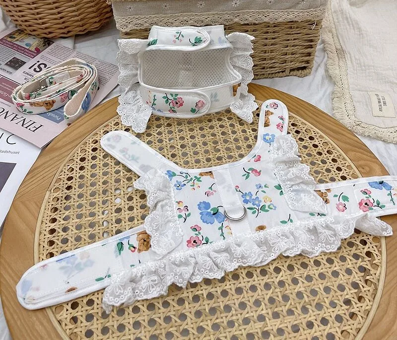 Dog Cat Harness Leash Set Adjustable Lace Floral Pet Harness Vest Cute Puppy Dog Princess Dress Skirt Walking Lead Chihuahua