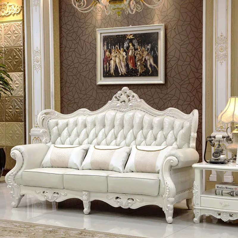 European Style Villa Sofa Small Apartment First Layer Leather 1+2+3 Cowhide Combination Ivory White Living Room Furniture