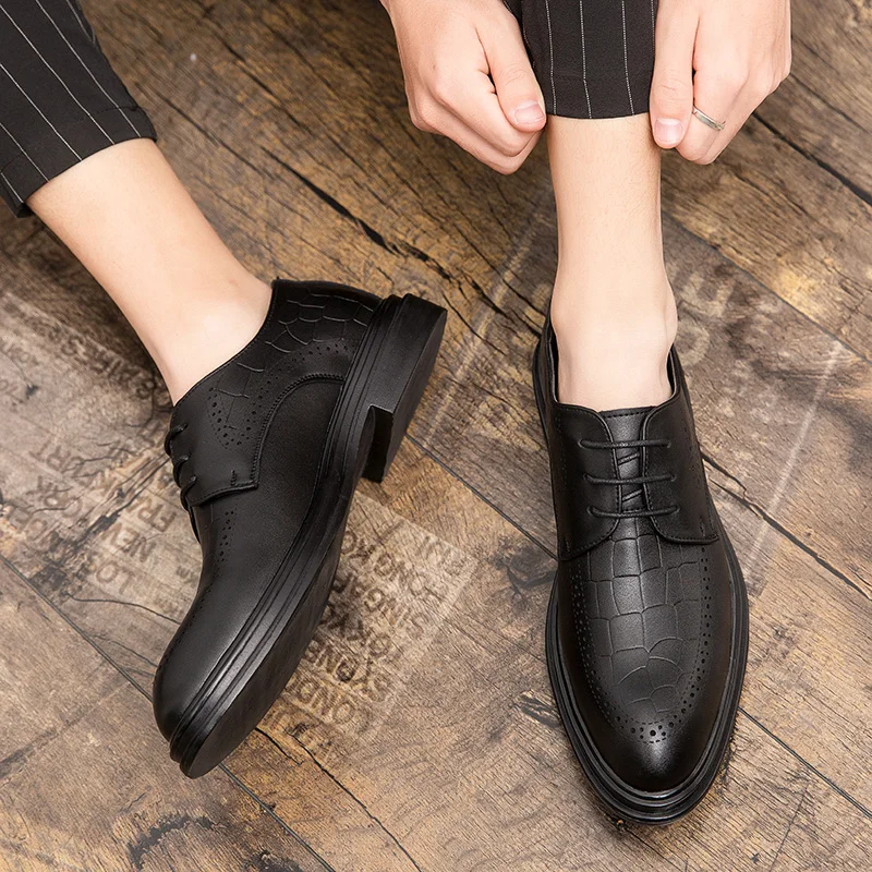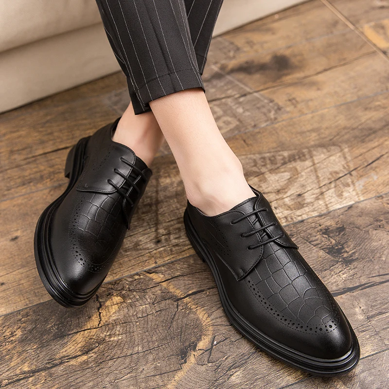 Fashion Men's Dress Shoes Men Luxury brogue oxfords Ventilation Pointed Toe Slip On Casual Leather Wedding party Shoes men