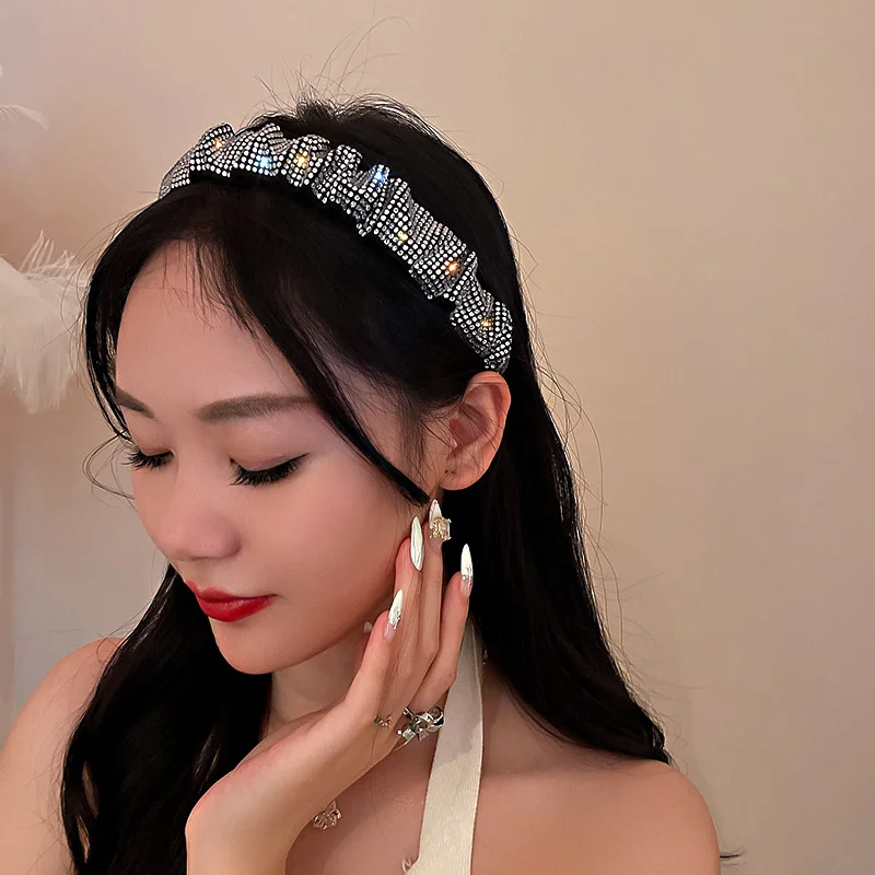 FYUAN Vintage White Black Rhinestone Hairbands for Women Velvet Headwear Hair Accessories Jewelry