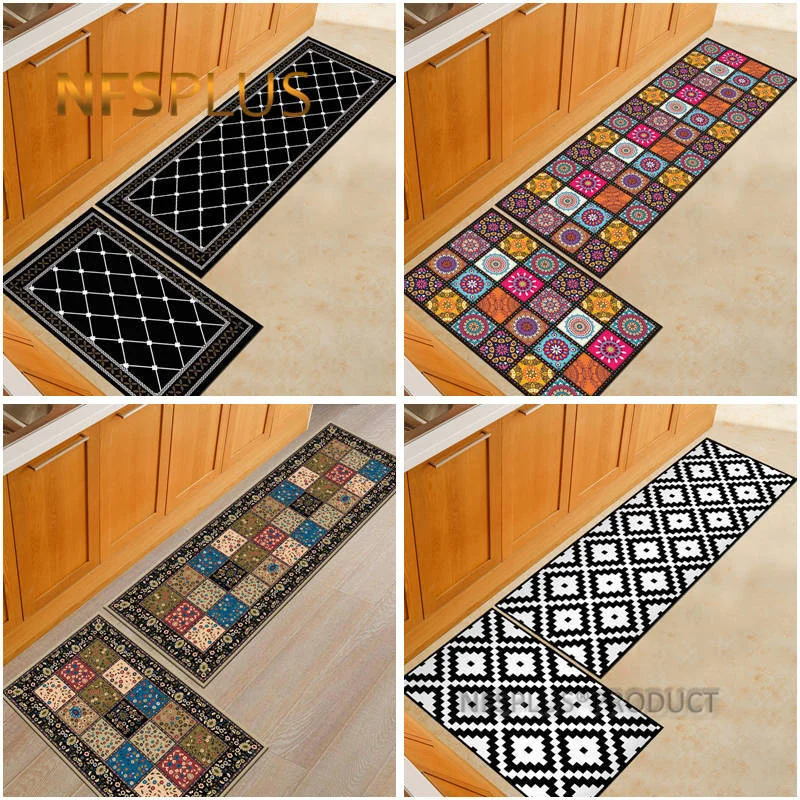 Geometric Kitchen Carpet Floor Mat Rugs Polyester Fiber Printed Home Decorative Anti-Slip Hallway Door Mats Entrance Doormat