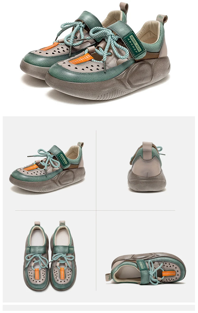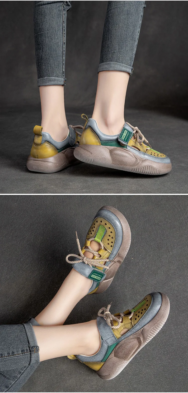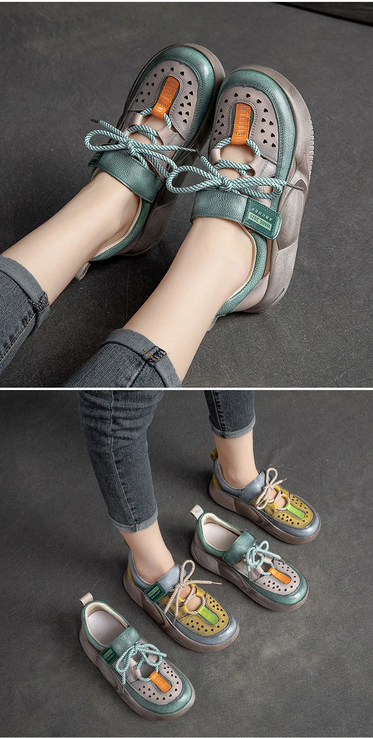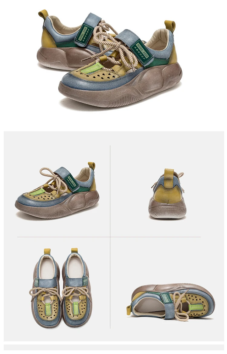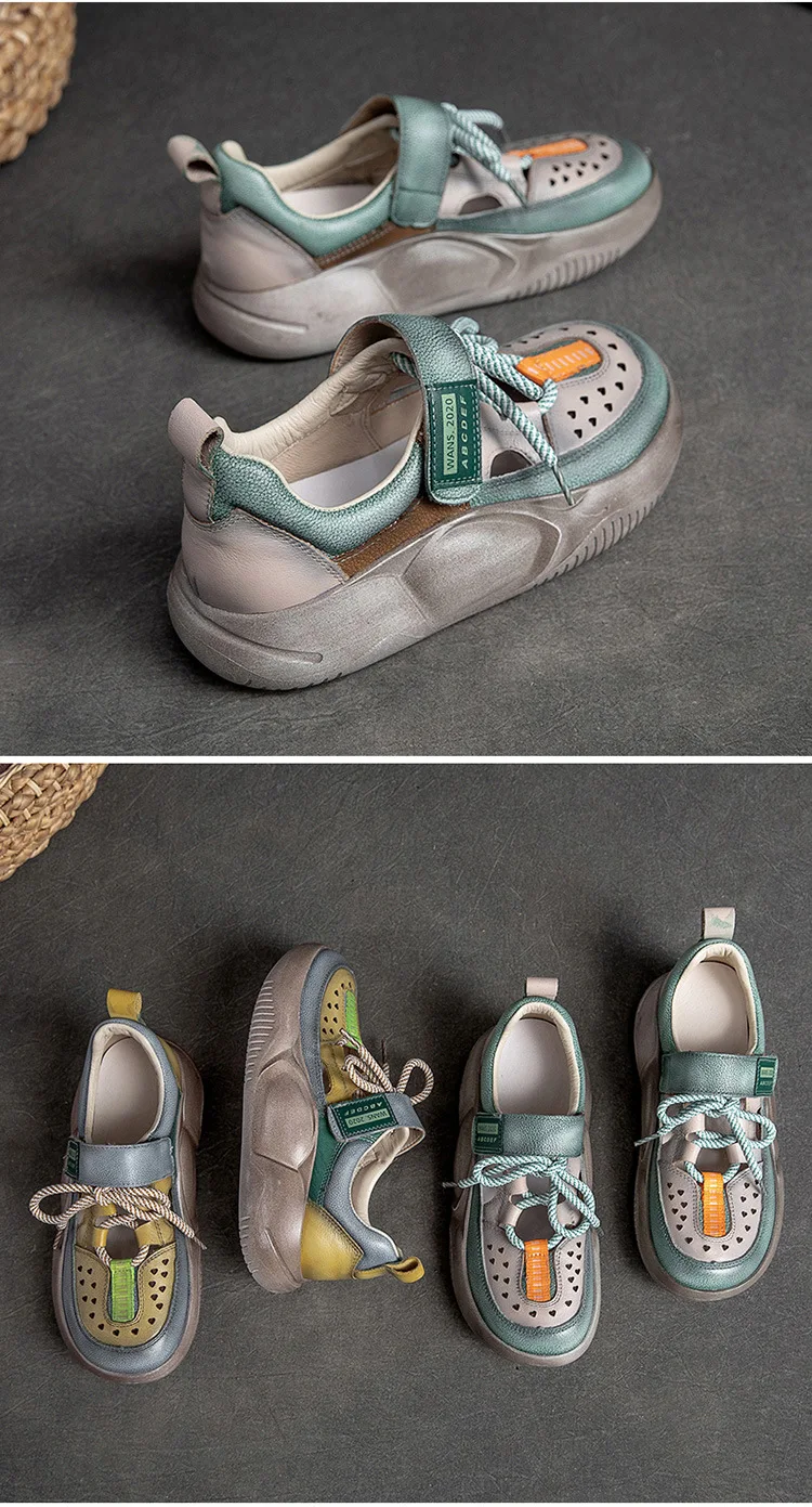 GKTINOO Hook & Loop Shoes Women Sneakers Genuine Leather Mixed Colors 2023 New Handmade Comfortable Retro Platform Sneakers
