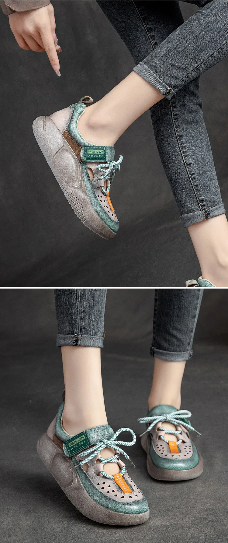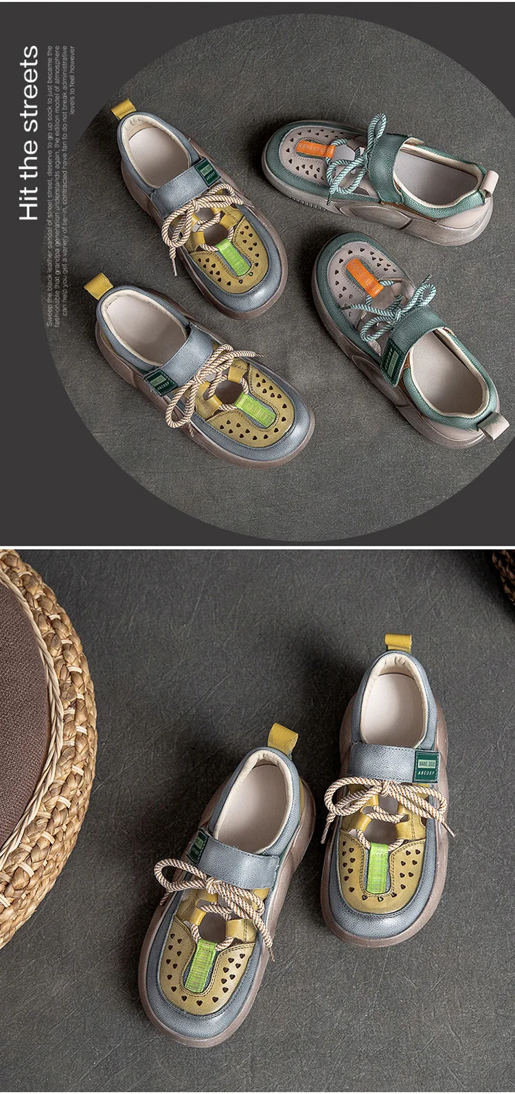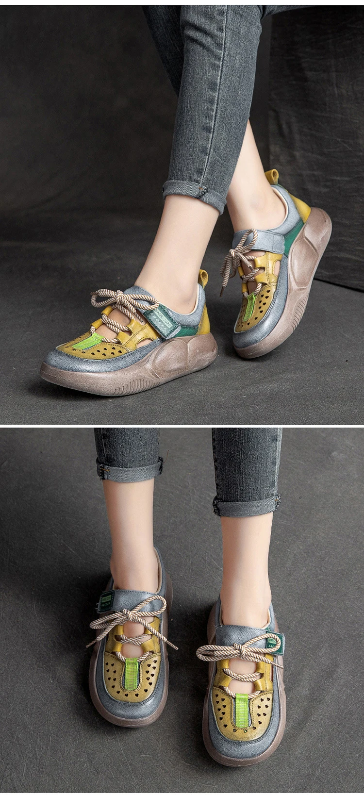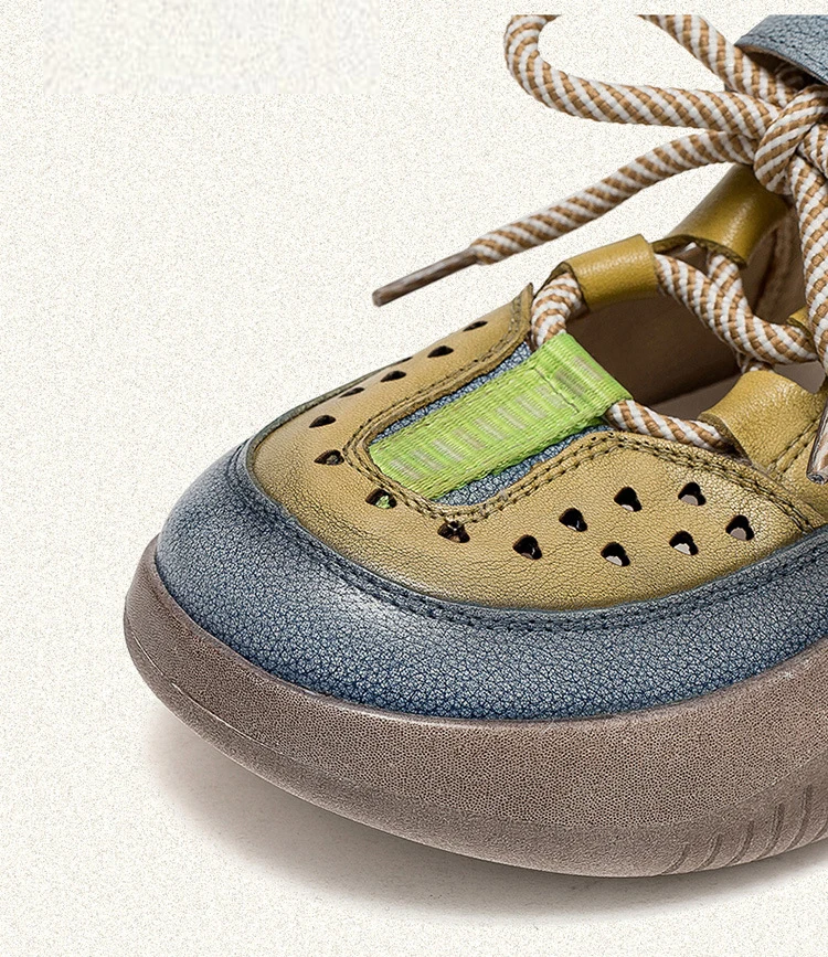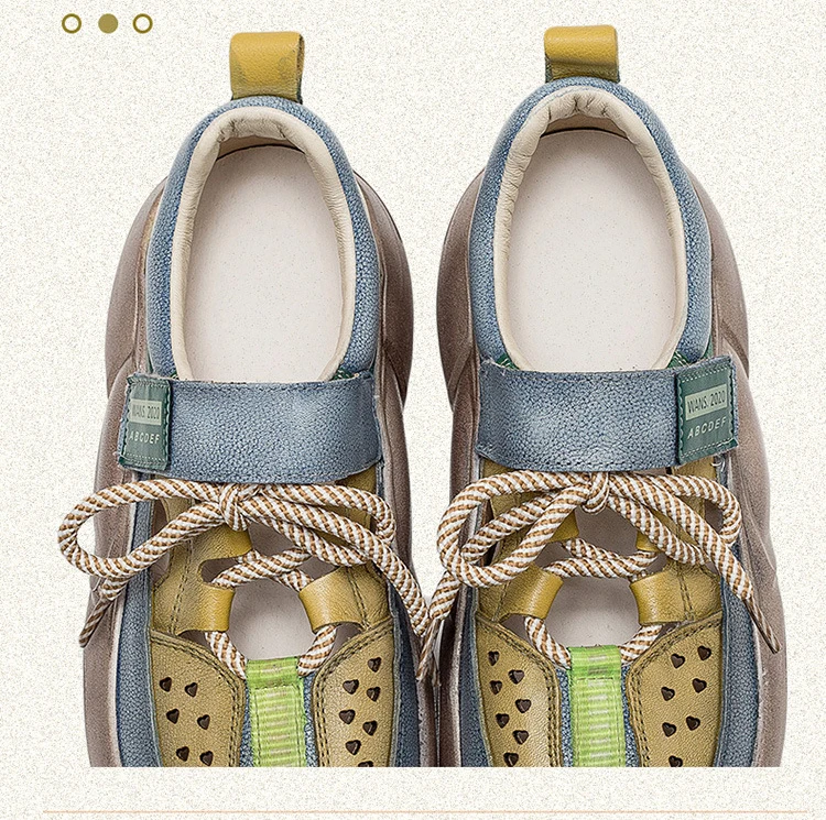 GKTINOO Hook & Loop Shoes Women Sneakers Genuine Leather Mixed Colors 2023 New Handmade Comfortable Retro Platform Sneakers