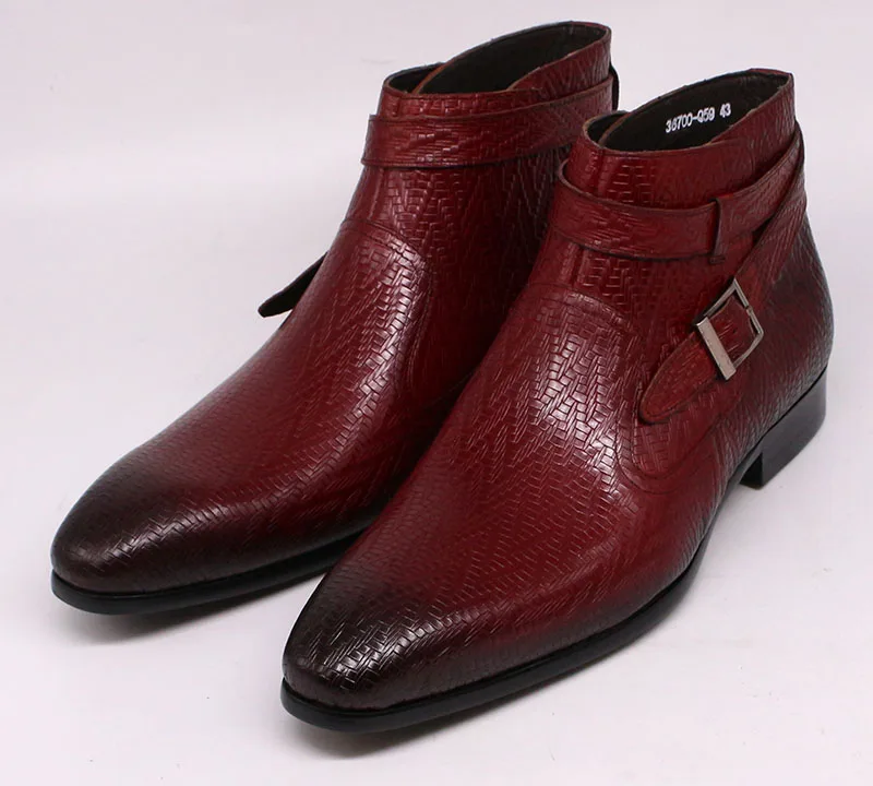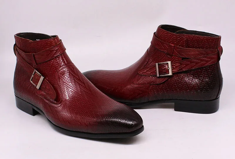 Handmade Men Ankle Boots Felix Chu Genuine Leather Mens Motorcycle Boots Black Red Buckle Strap High Top Dress Shoes for Men