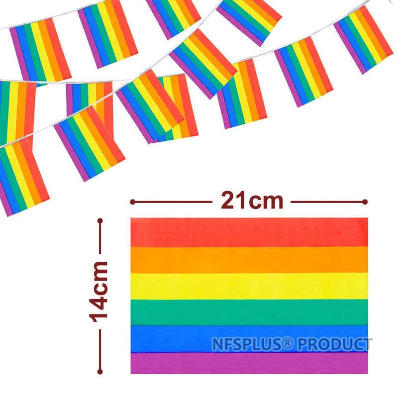 Hanging Rainbow Flag LGBT Gay Pride Lesbian Bisexual Tansgender Pansexual 14x21cm 6M~7M Home Party Decorative Flags And Banners