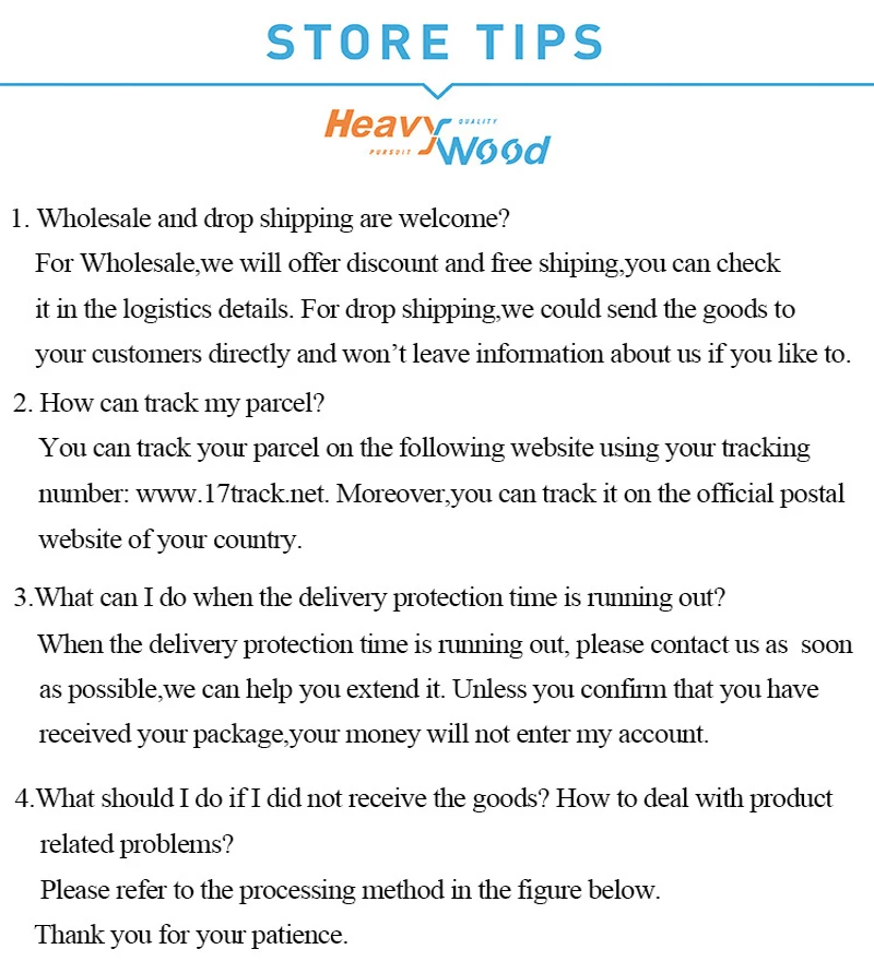 Pursuing quality is the working style of Heavywood. We will do our best to provide every customer with the best quality service,your satisfaction is the driving force of our persistence. Thank you for purchasing our products.