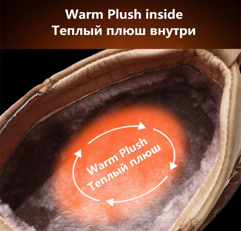 High Quality Leather Men Boots Warm Plush Snow Boots Winter Boots Work Shoes Men's Footwear Rubber Ankle Boots Sneakers Size 48