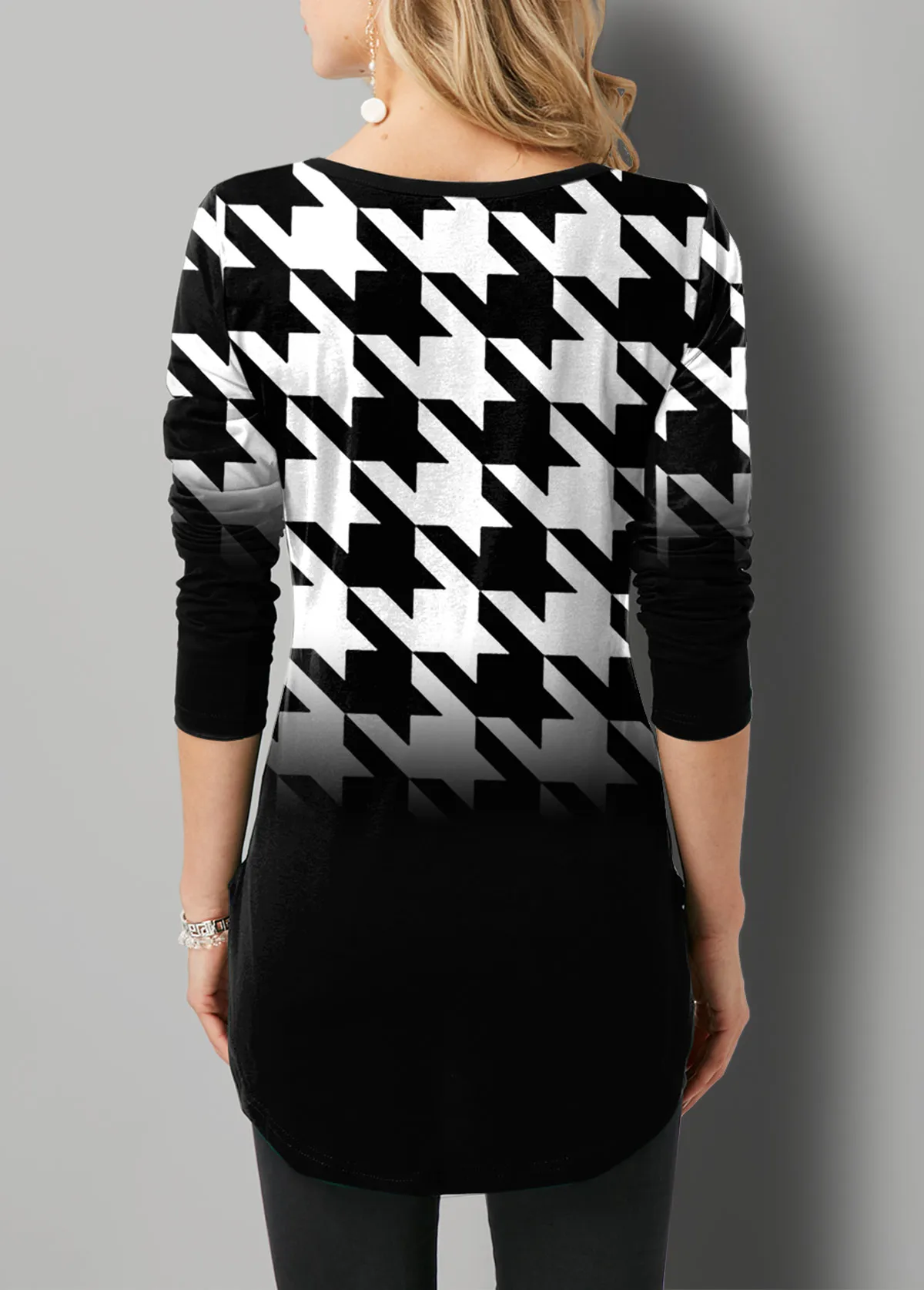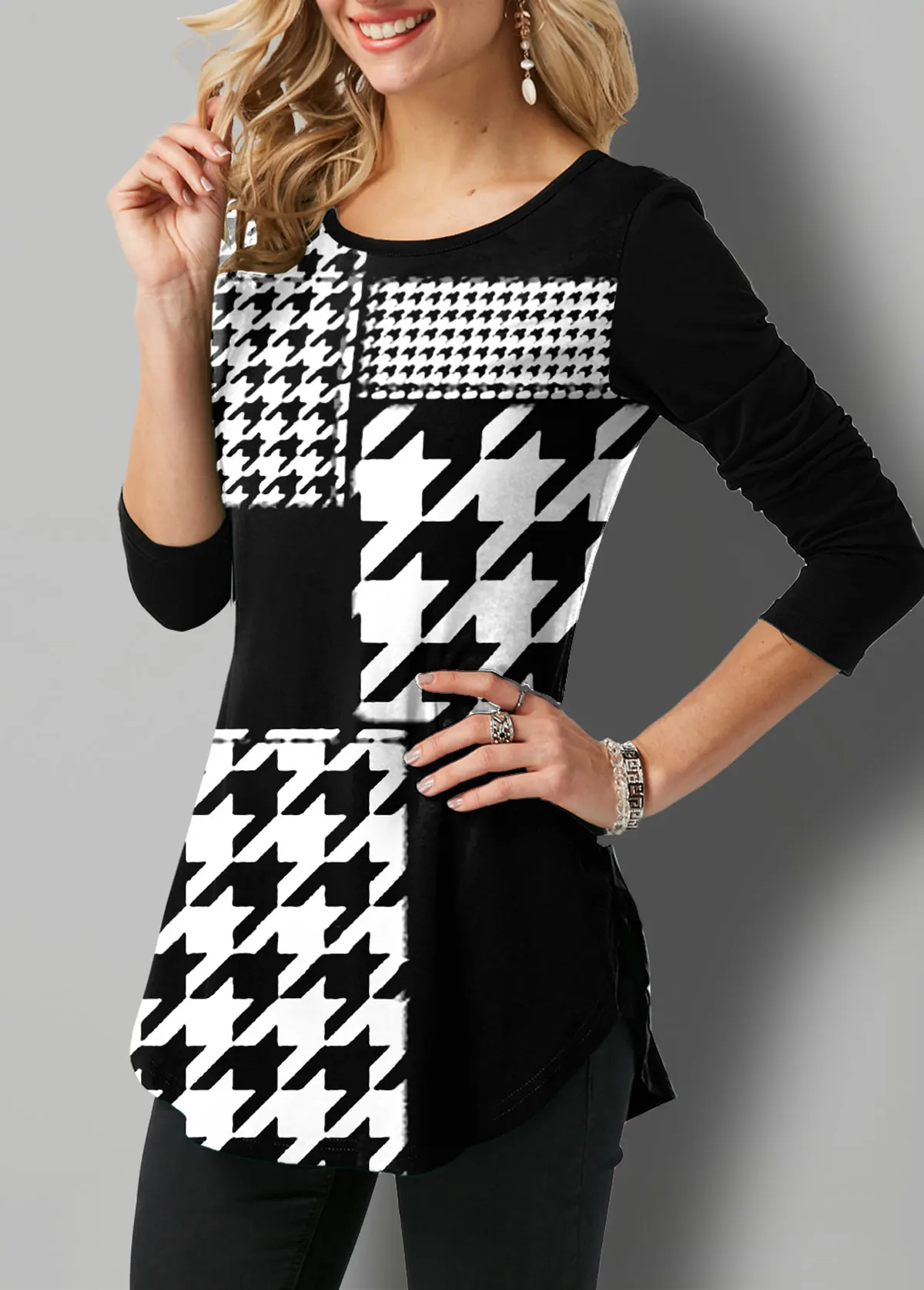 Houndstooth Flags Printing Oversized T-shirt Female Clothing Harajuku Vintage Y2k Tops Women 2021 Long Sleeve Aesthetic Tunic