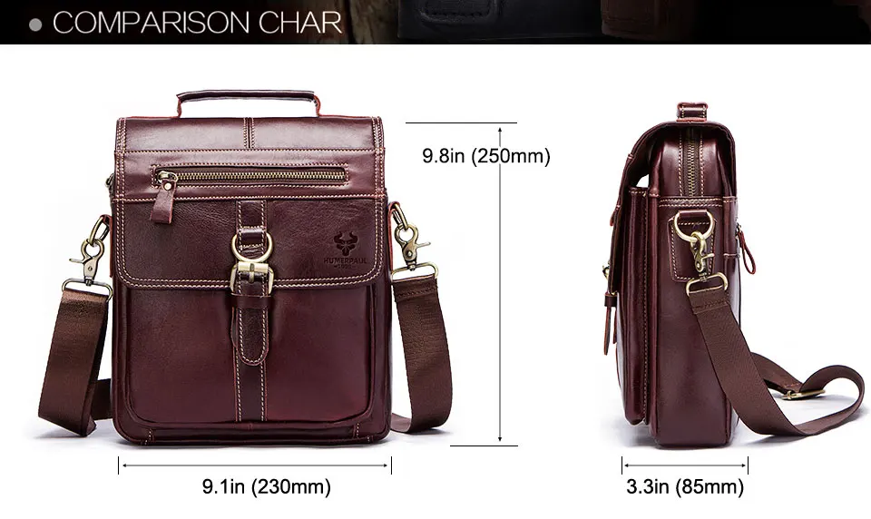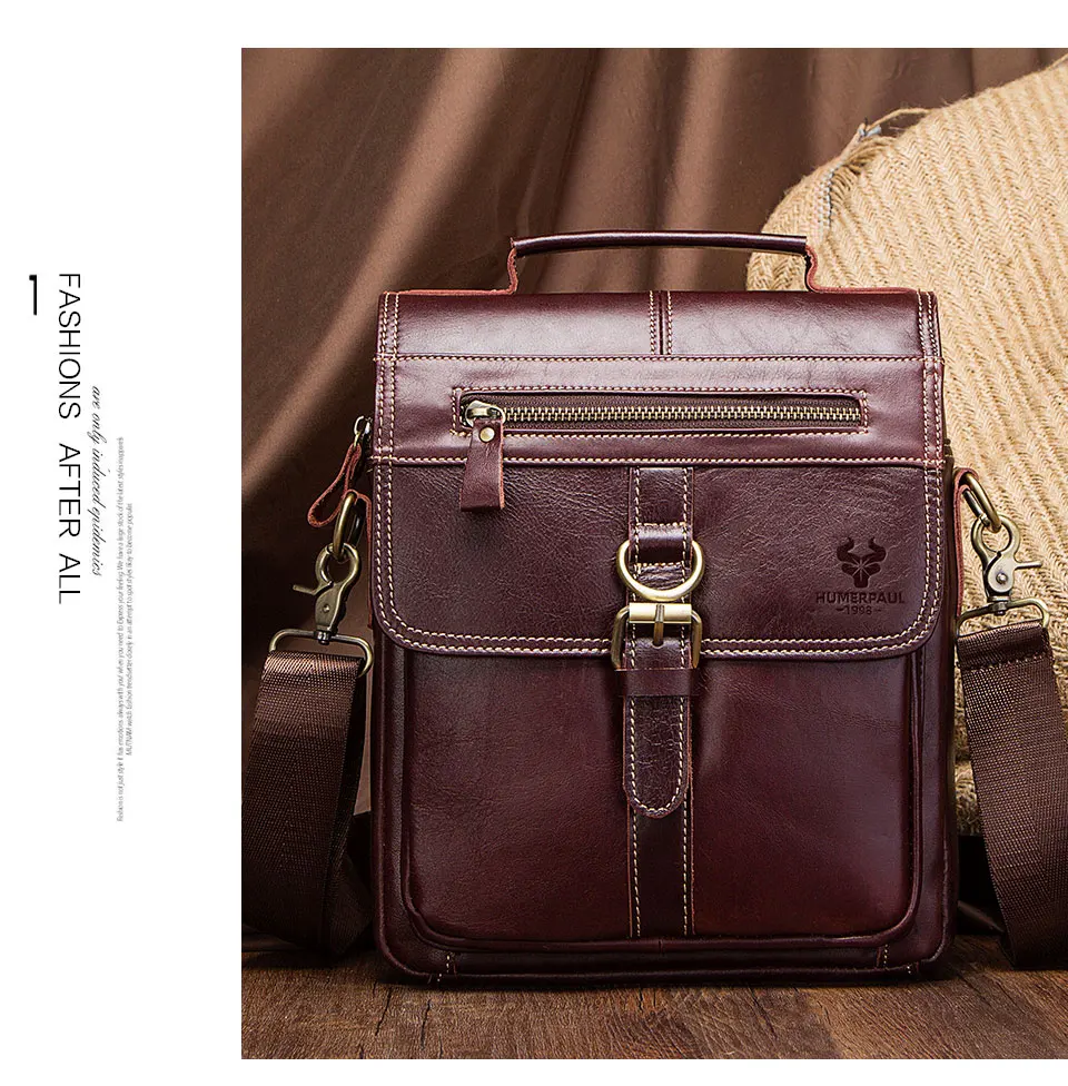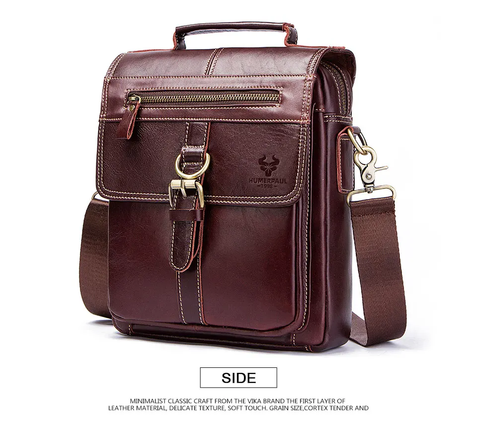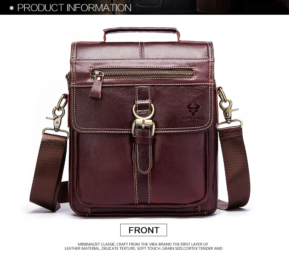 HUMERPAUL Genuine Leather Men's Crossbody Shoulder Bag Vintage Cowhide Messenger Bag For Men Casual High Quality Handbag