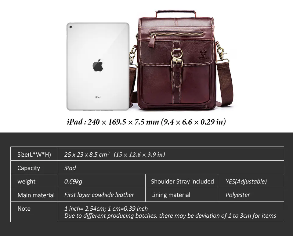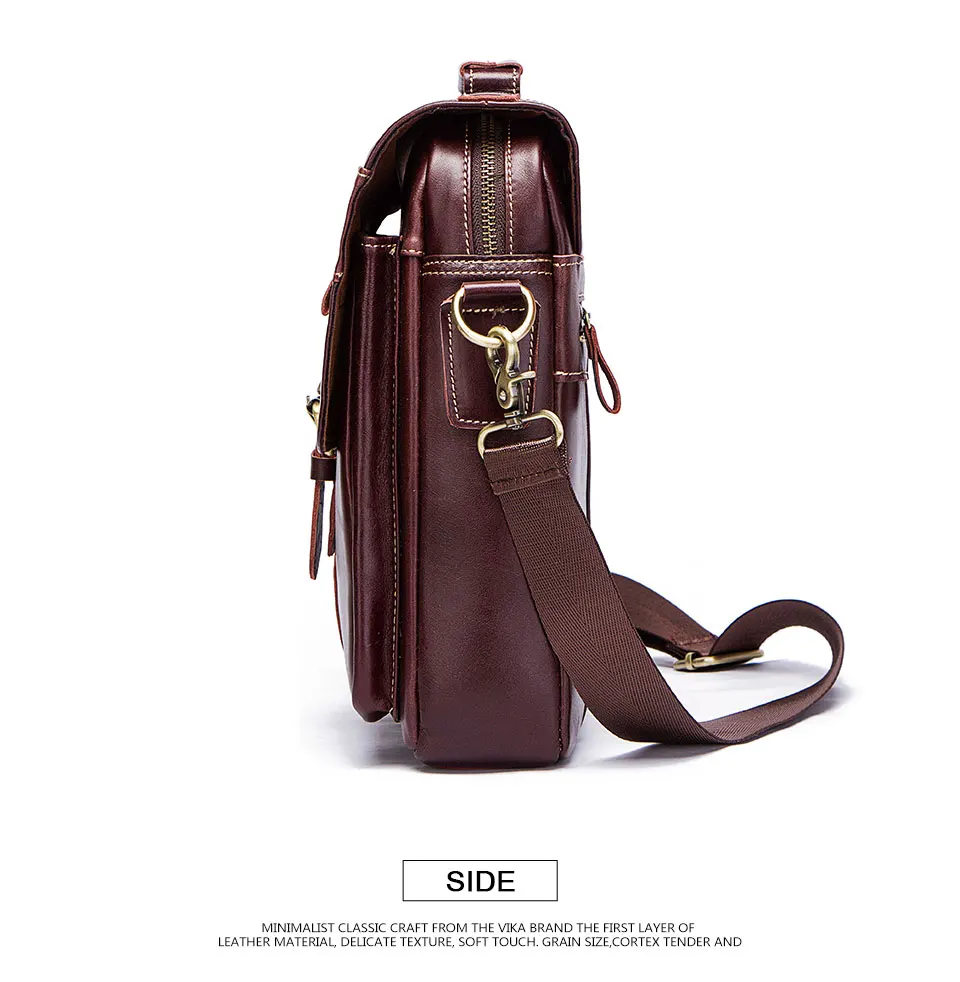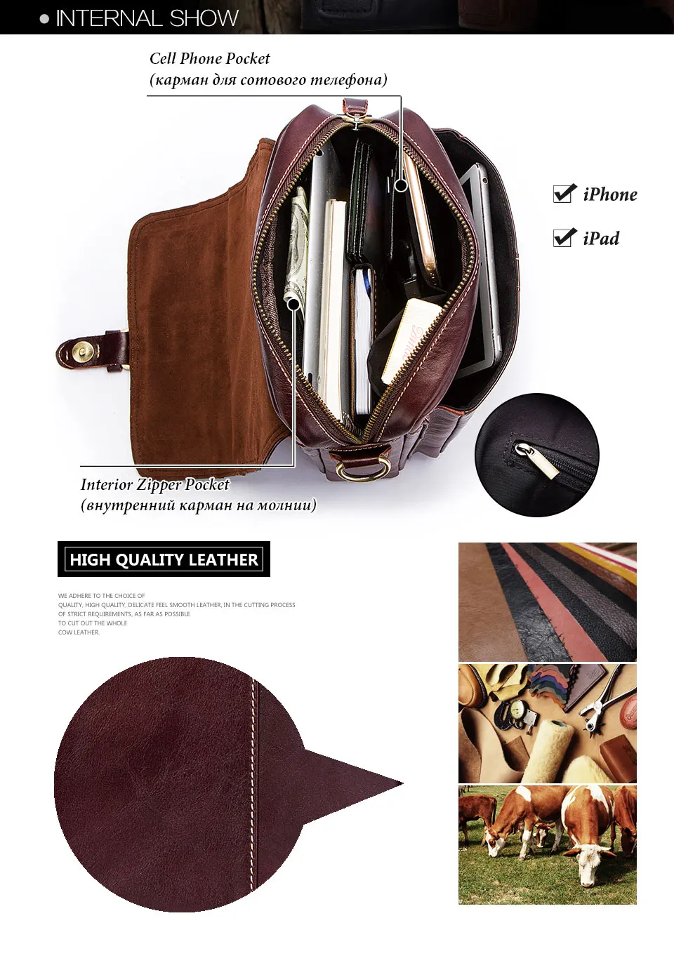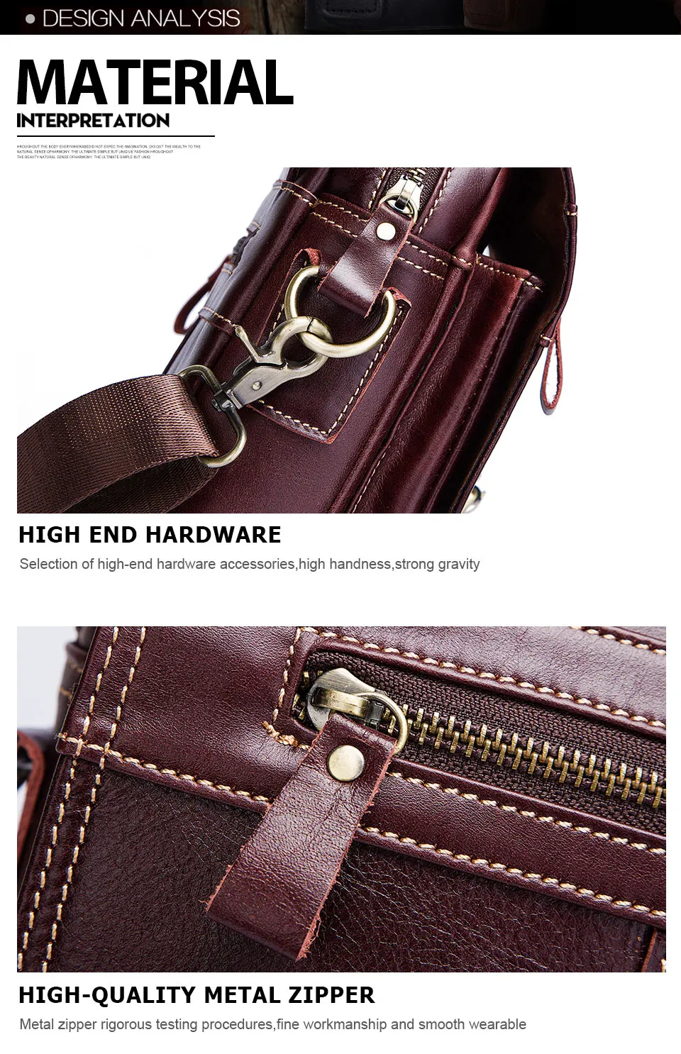 HUMERPAUL Genuine Leather Men's Crossbody Shoulder Bag Vintage Cowhide Messenger Bag For Men Casual High Quality Handbag