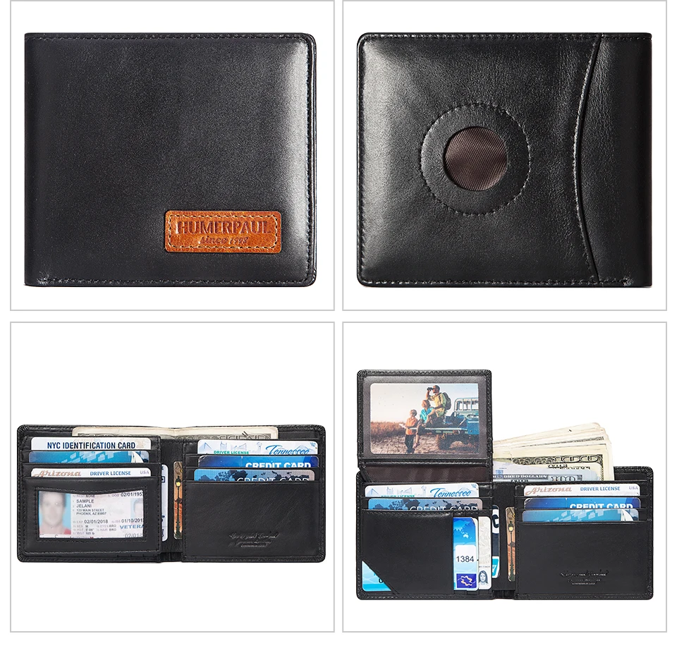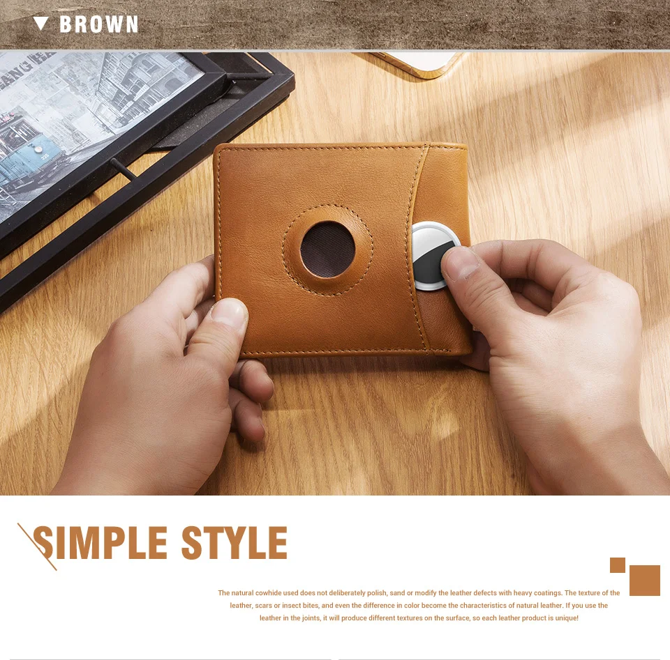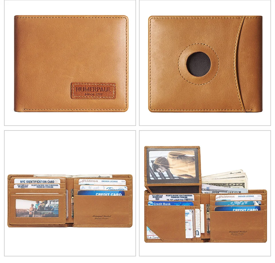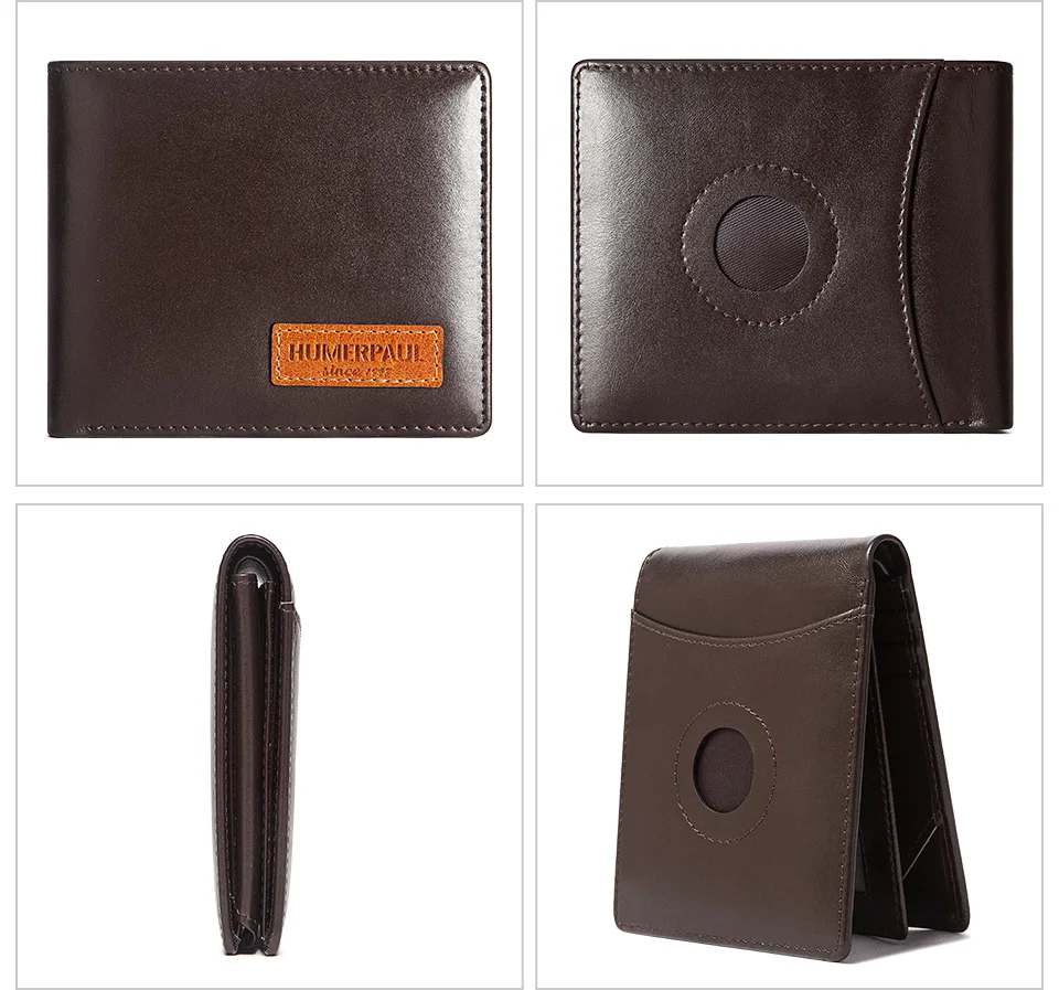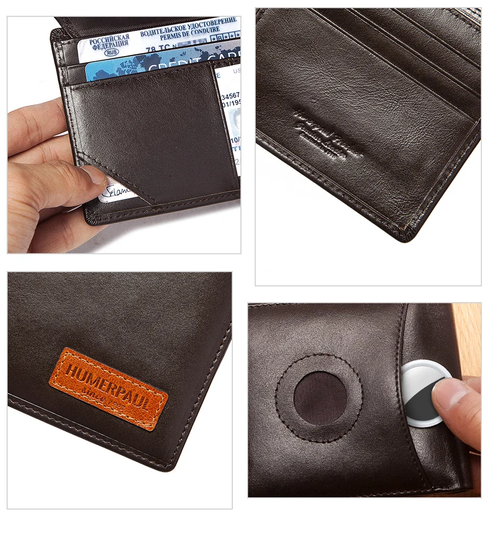 HUMERPAUL RFID Apple AirTag Wallet for Men Genuine Leather Card Holder Wallets Short Male Money Bag with Coin Pocket Cartera