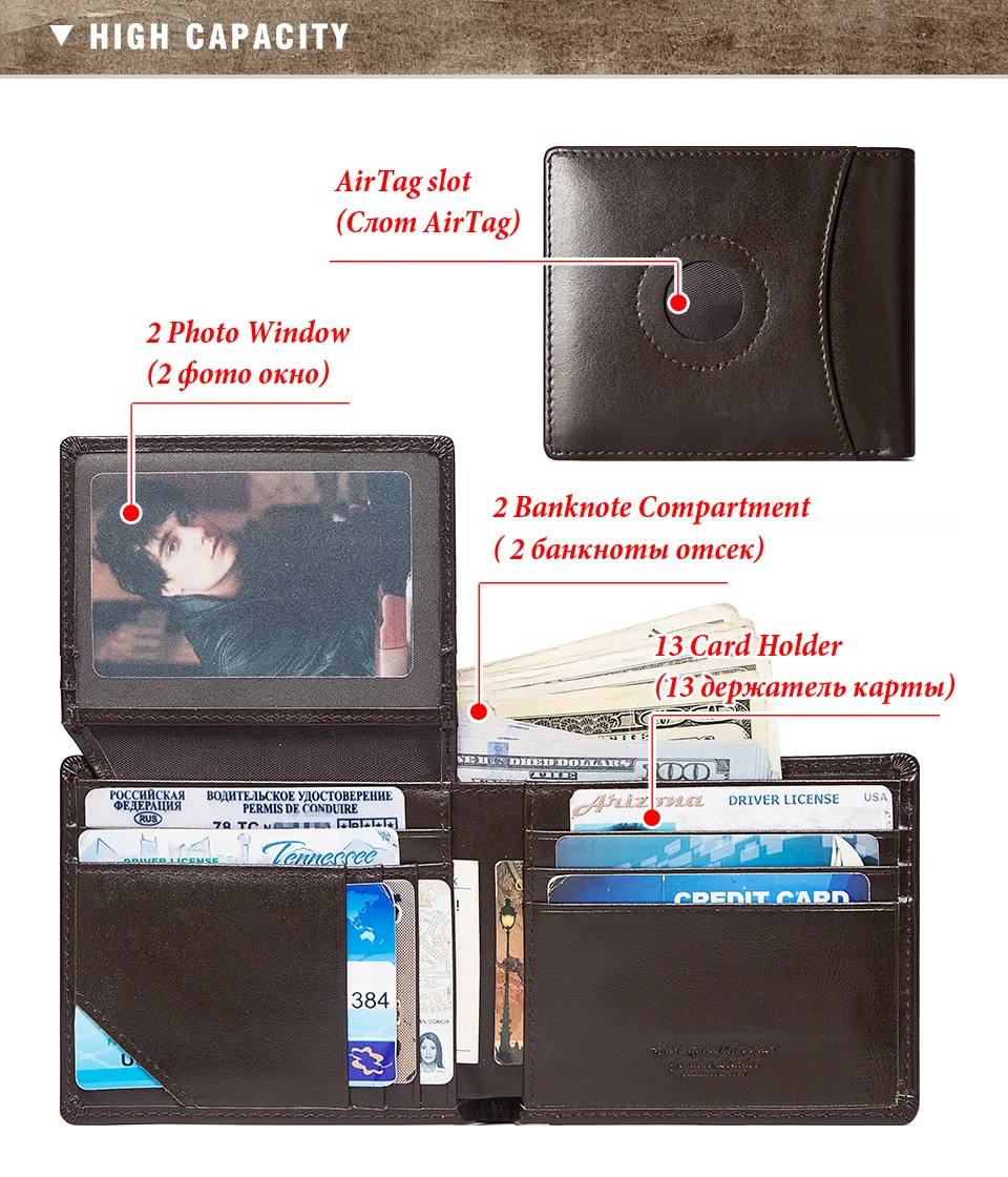 Model Number: bp995-coffee(slim men real leather purse with card holder)