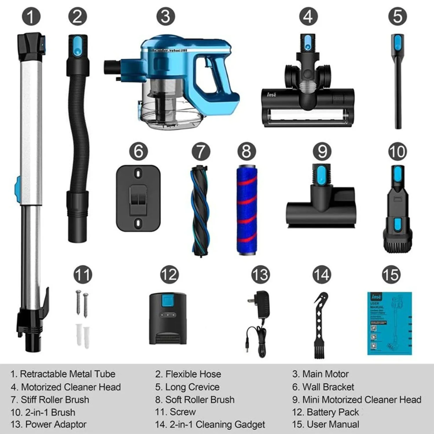 INSE Cordless Vacuum Cleaner Up to 45min Runtime, Rechargeable Battery Vacuum, Lightweight Vacuum for Carpet Hard Floor Pet Hair