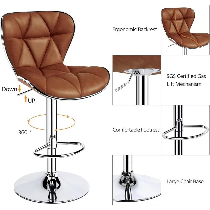 - 【Heavy-duty】Being made of selected PU leather, foam, chromium-plated steel and plywood, this adjustable bar chair features a solid construction, thick foam filling and special-treated surface of the legs and handles, preventing water and rusting. Bearing: 125 kg/ 276 lb.