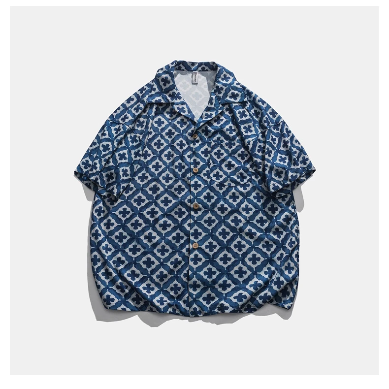 Japanese Men's Summer Printed Short Sleeve Shirts Fashion Loose Casual Tops Men's Brand Shirts streetwear
