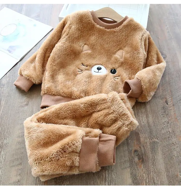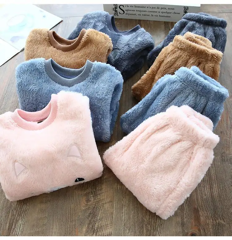 Kids Clothes Flannel Baby Pyjamas Winter Lounge Set Long Johns Kids Clothes Girls Loungewear Clothes Boys Sleepwear Pyjamas Suit