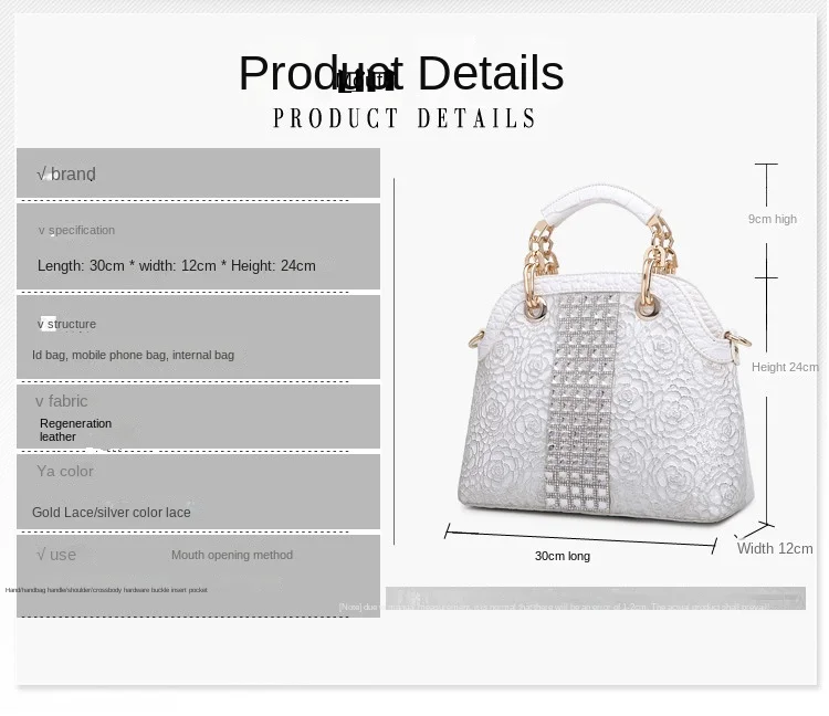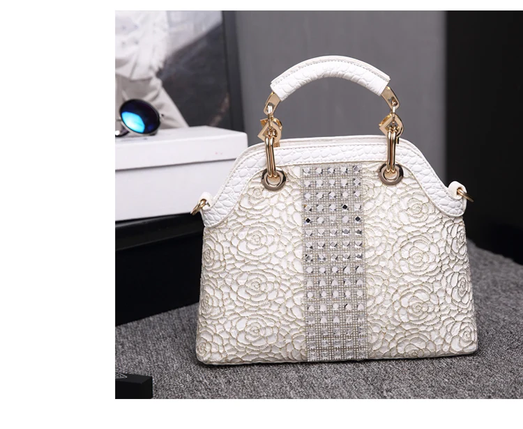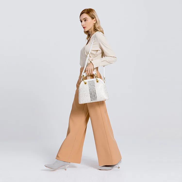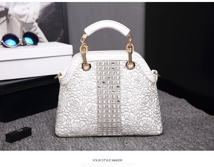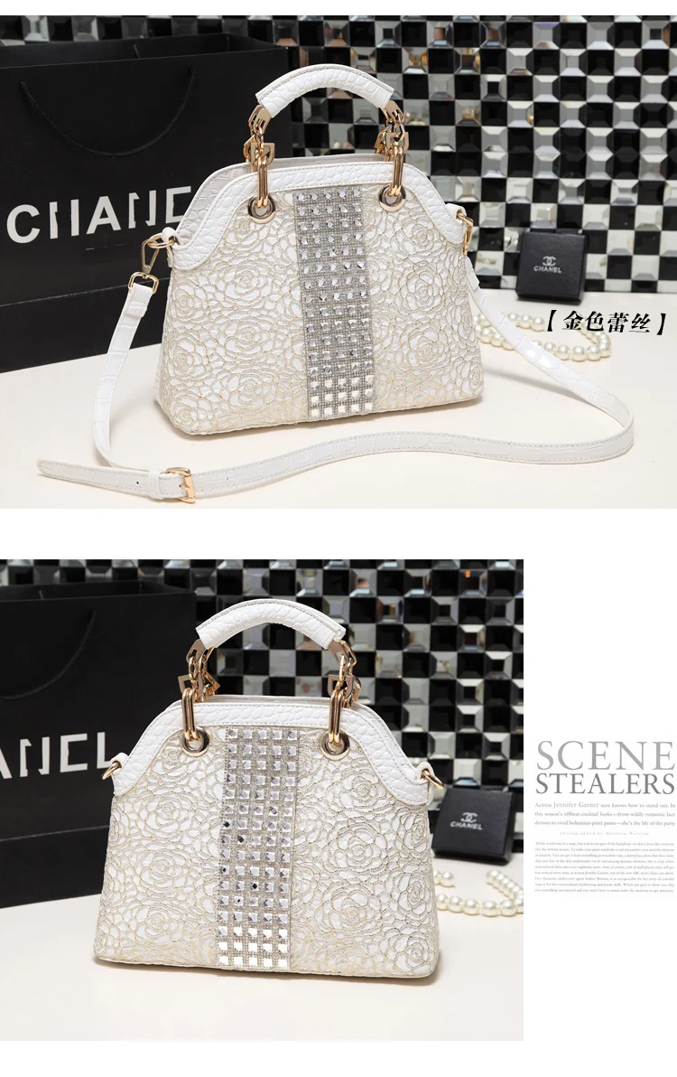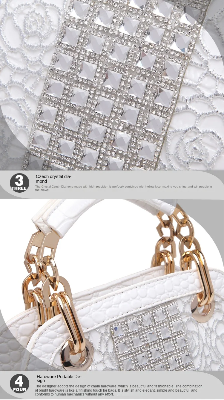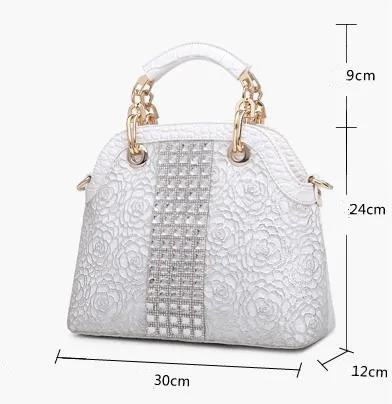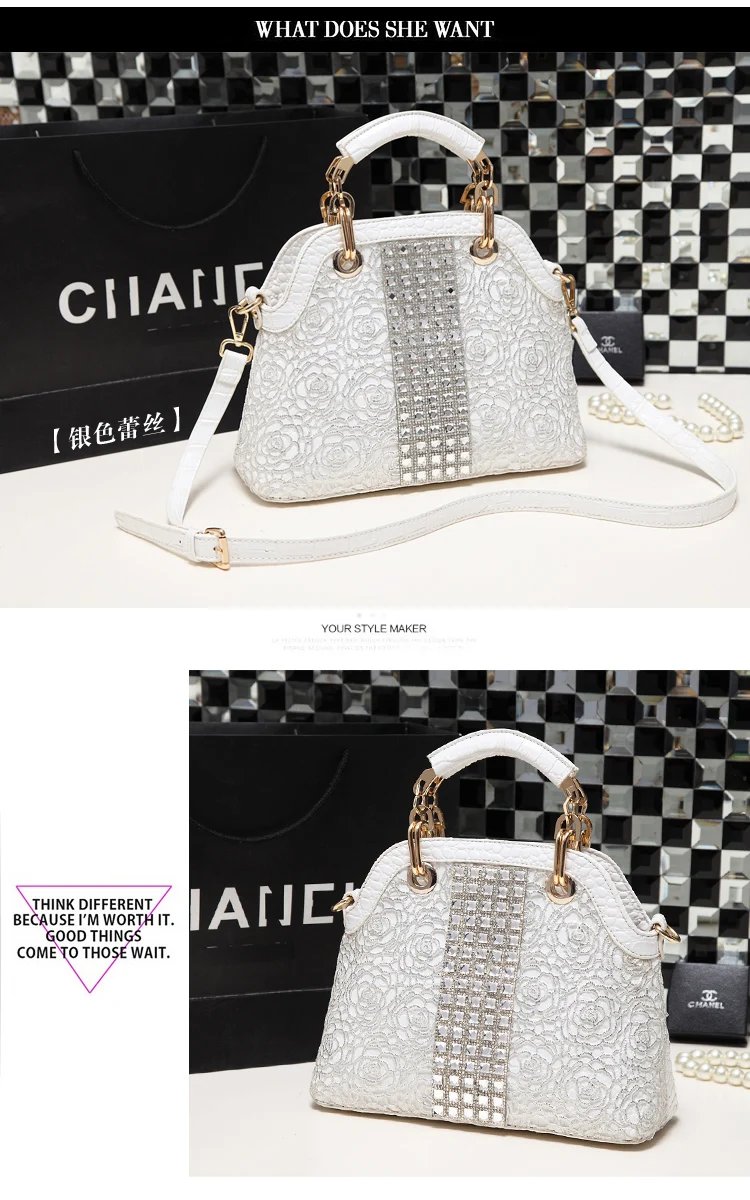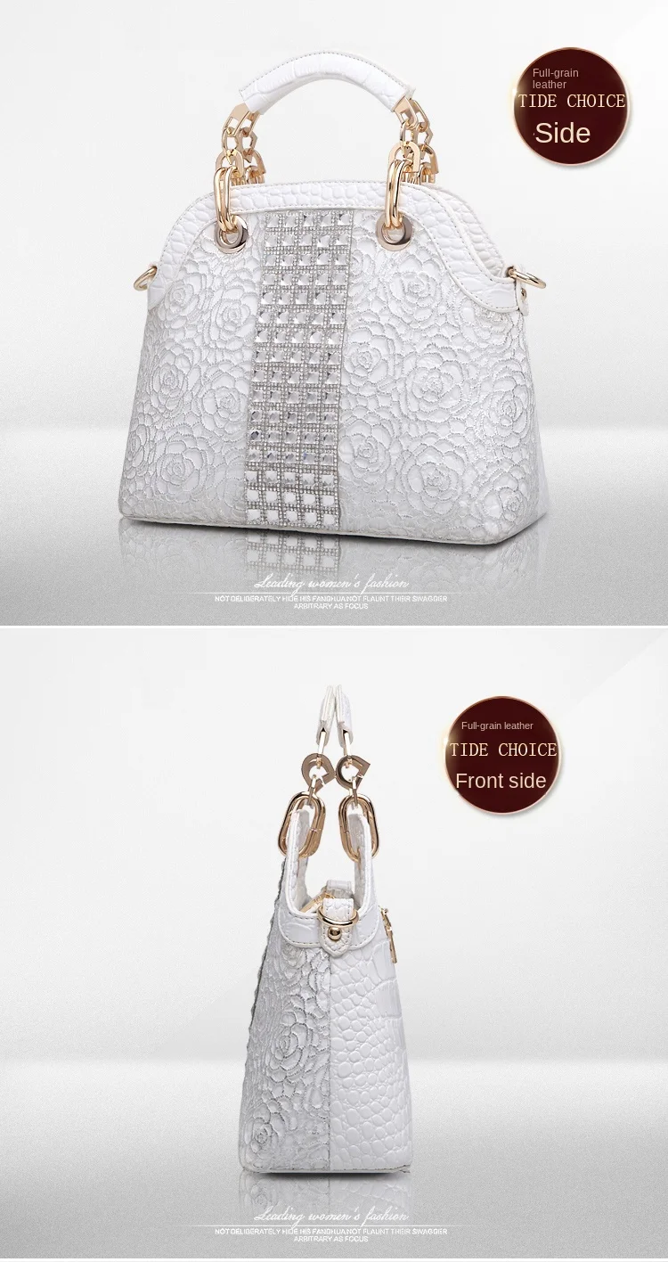 Luxury Fashion Diamonds Women Handbags Crossbody Female Shoulder Shell Bag Rhinestone Messenger Bags Crocodile Pattern Leather