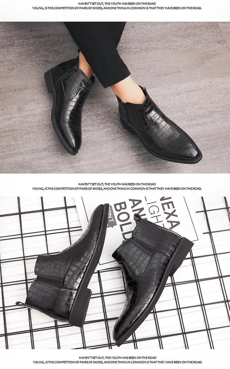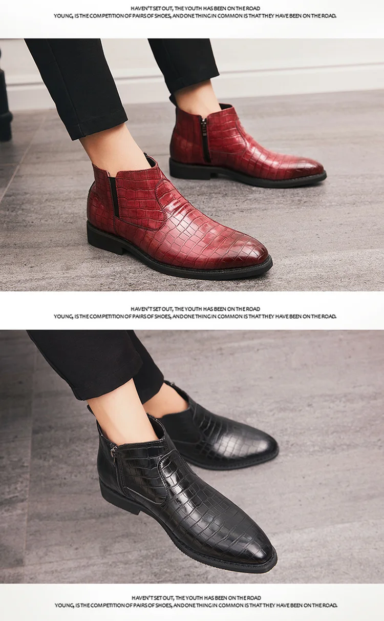 Luxury Leather Red Boots Man Bright Crocodile Chelsea Boots Men Pointed Zipper Men's Ankle Boots Big Size 46 botina masculina