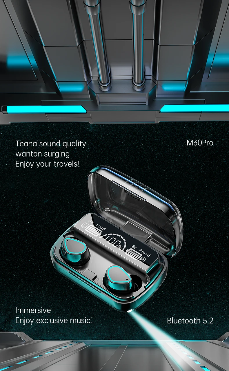 M30 Headphones Tws Bluetooth Earphones 5.2 9D Stereo with Flashlight Wireless Earbuds Waterproof Noise Reduction Headset