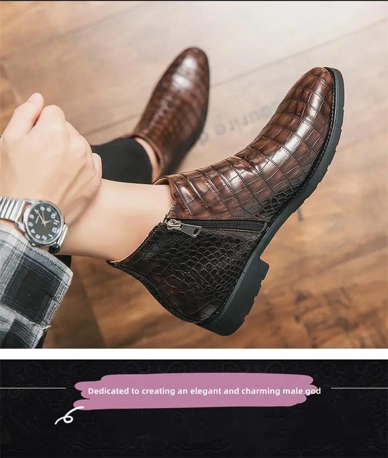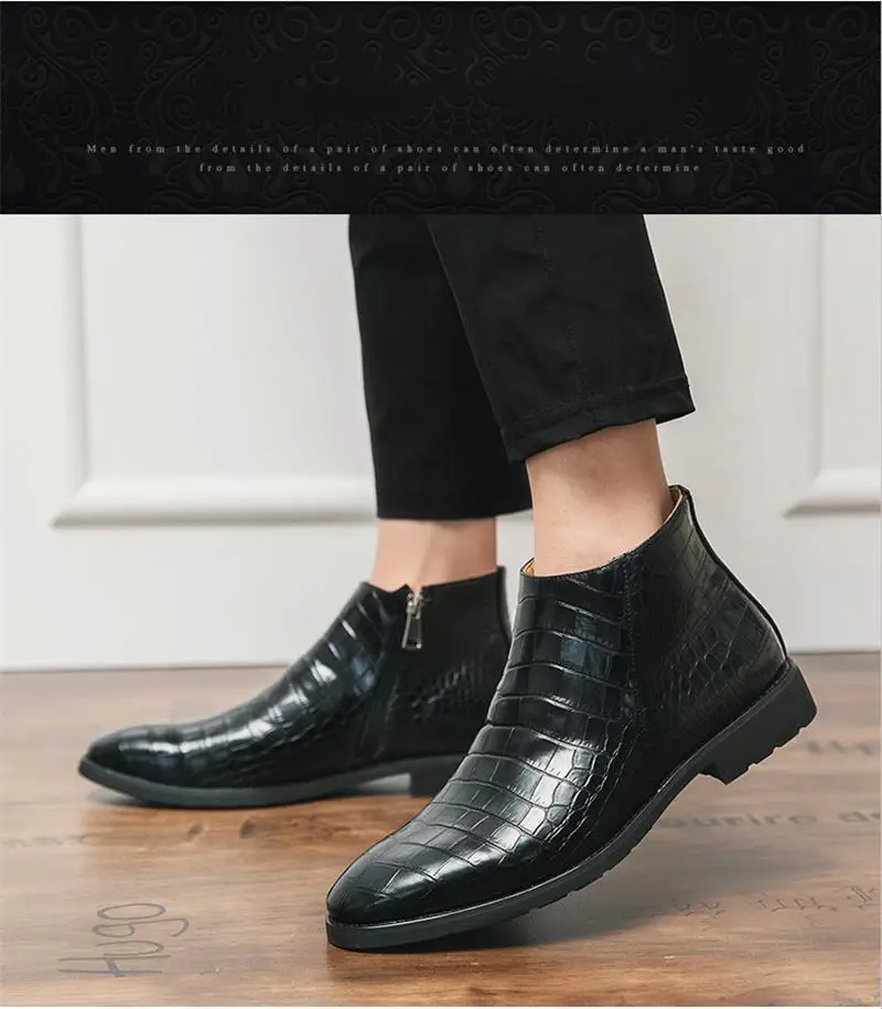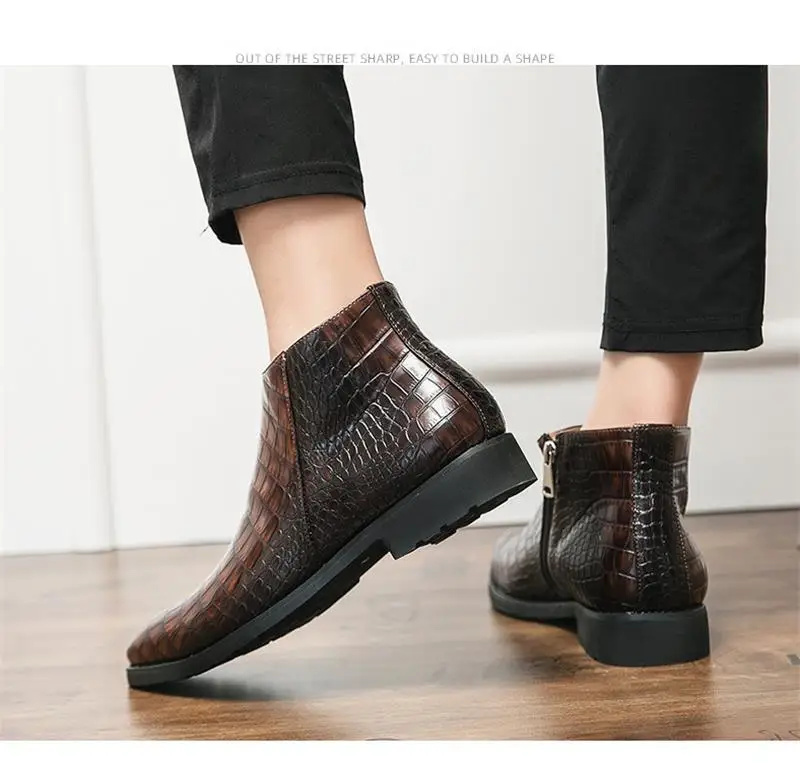 Men's Boots Zip Black Brown Low-heeled Business Handmade Cowboy Boots Botas De Trabajo Hombre Shoes for Men with Free Shipping