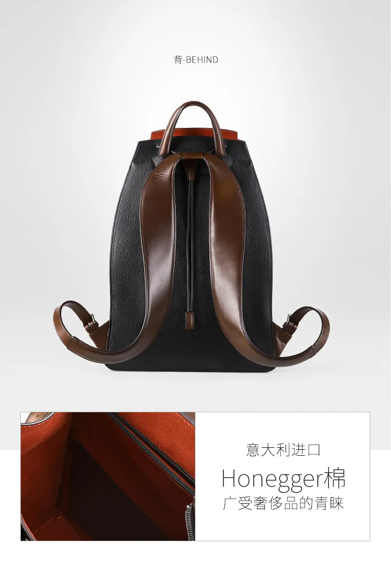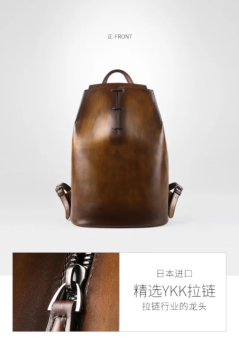 Men's Handmade Patina Calfskin Backpack Italian Luxury Brand Printing Vintage 15 Inch Laptop Genuine Leather Backpacks Mochila