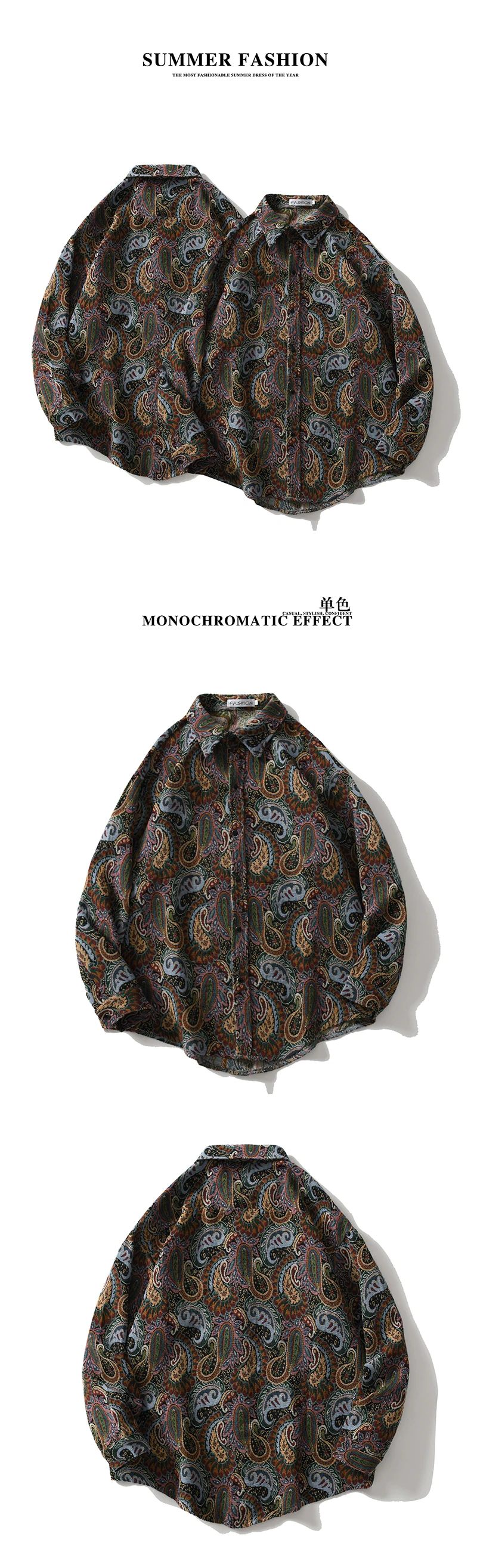 Men's Shirt Blouse Turn Down Collar Printed Casual Vintage Cardigan Loose Fashion Spring Long Sleeve Tops Streetwear