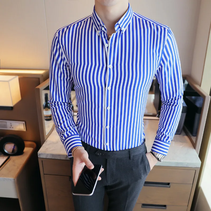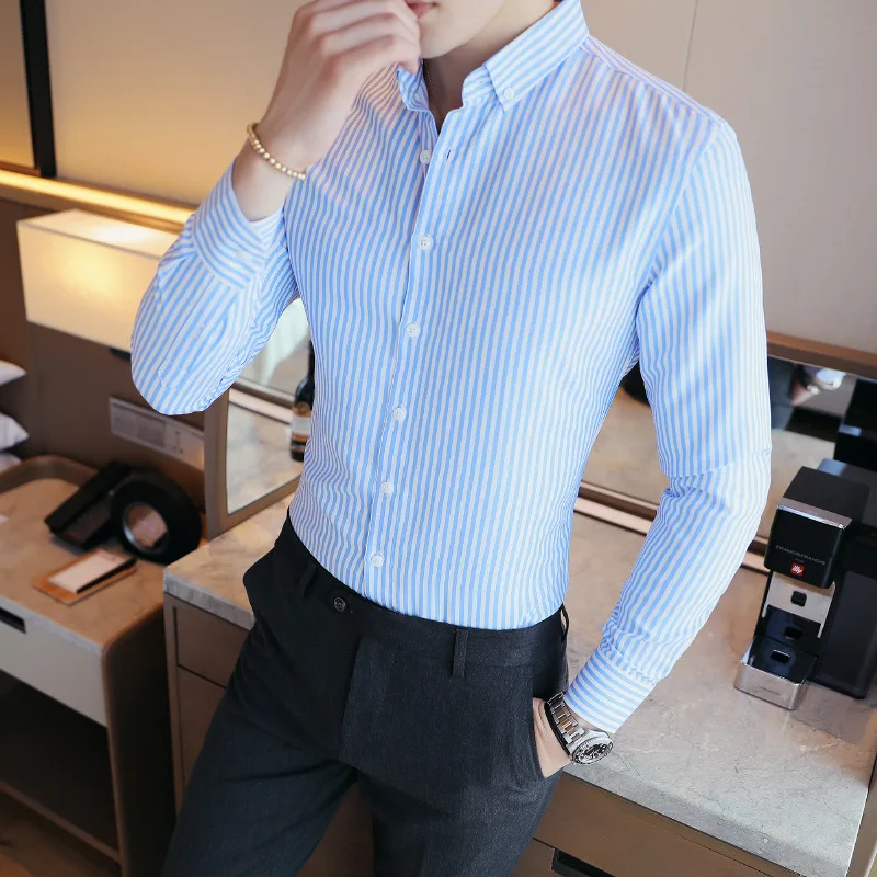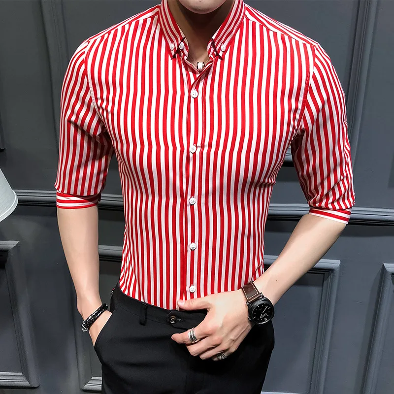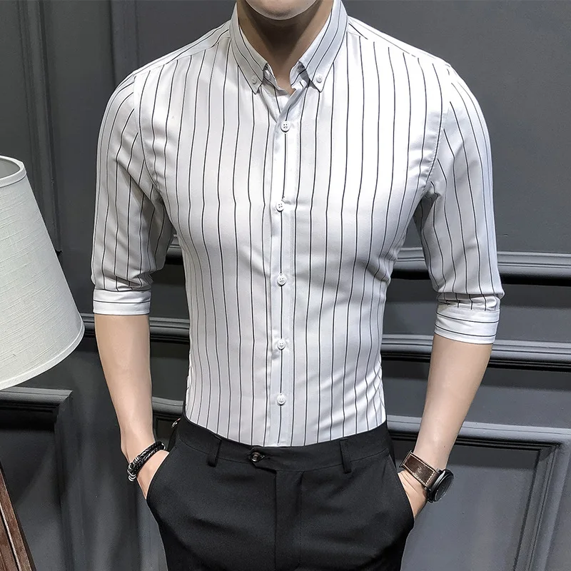 Men's Shirt Fashion Casual Striped Long Sleeved 3/4 Sleeve Slim Fit Spring Summer Autumn Quality Male Button Down Shirt