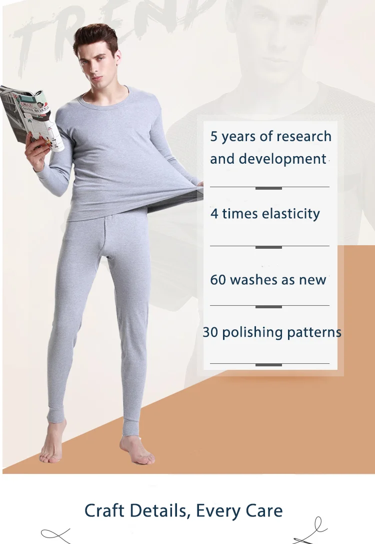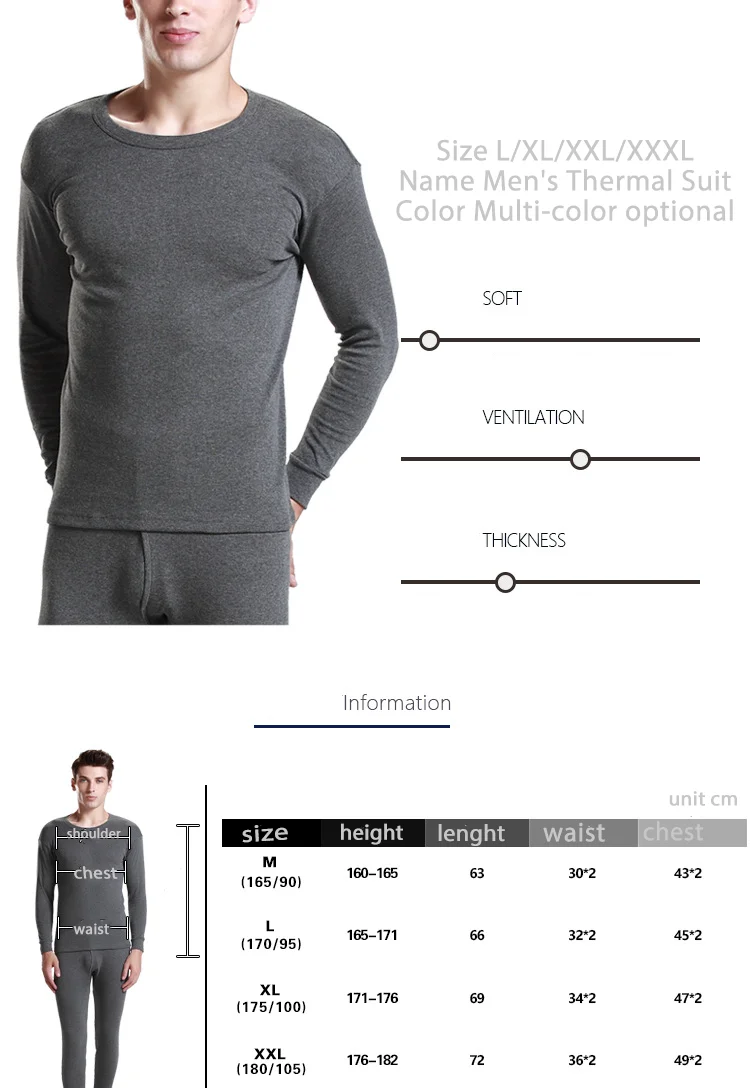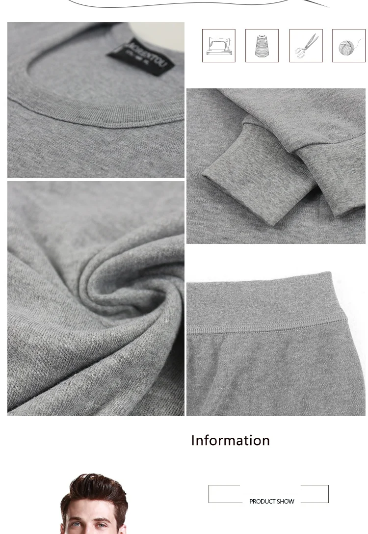 Men's Winter Thermal Underwear set Thermal Insulation Cotton Wool Long Sleeves Men Thermal Clothing Round Neck Men's Underwear