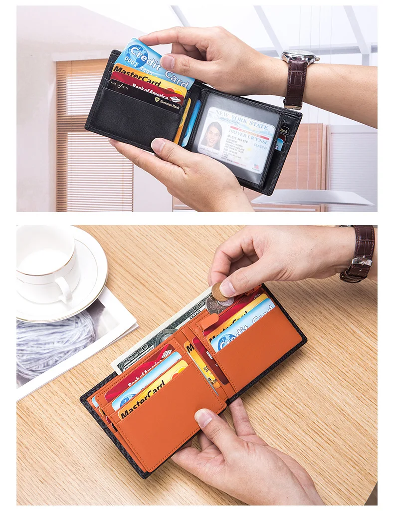 Men Wallet Wallet Rfid Ultra Thin Short Wallet Genuine Leather Coin Purse Card Case Blue Black Orange Card Organizer