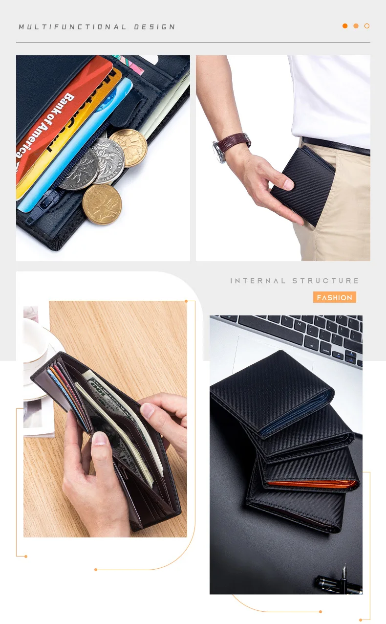 Men Pocket Wallet Rfid Anti-thief Short Wallets Genuine Leather Coin Purse Cash ID Cards Holder Card Organizer Black