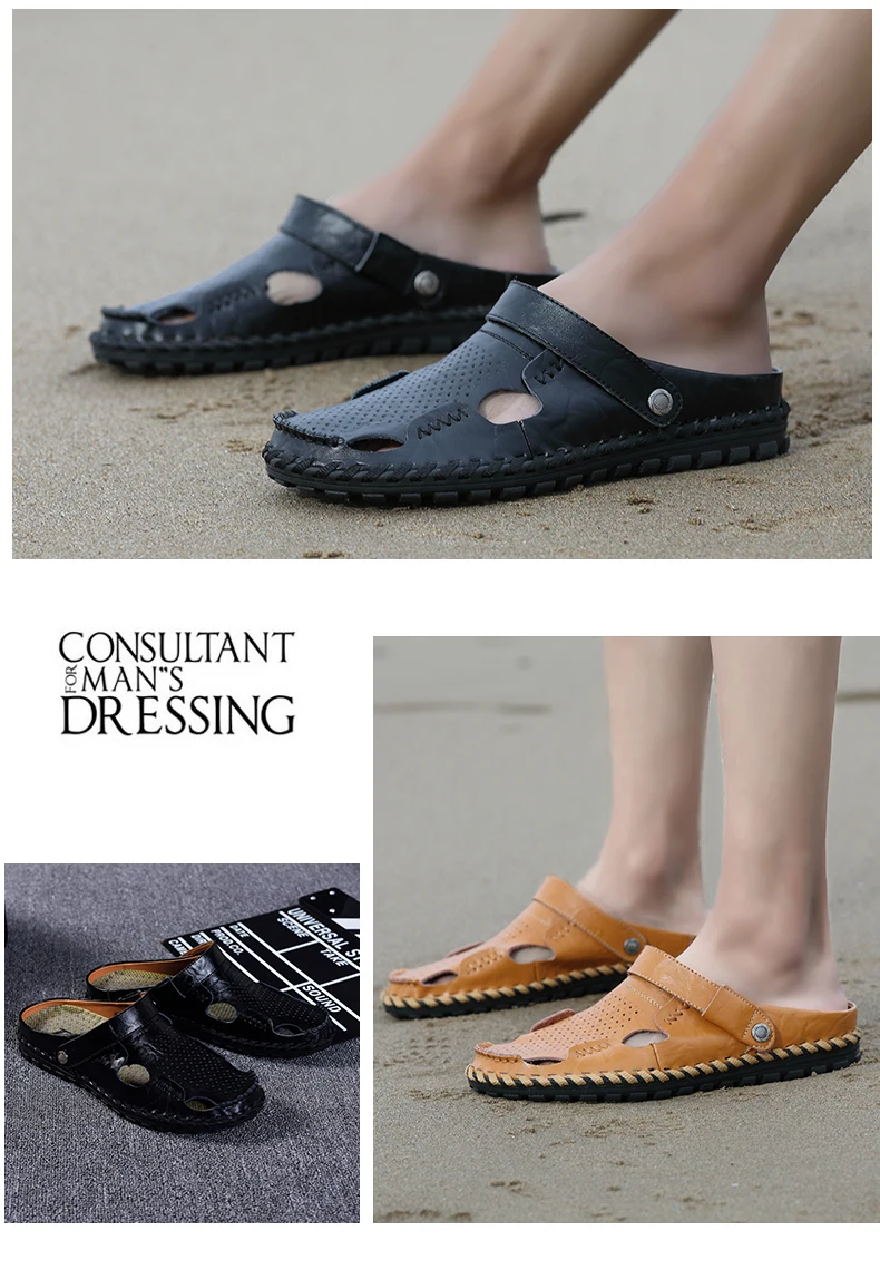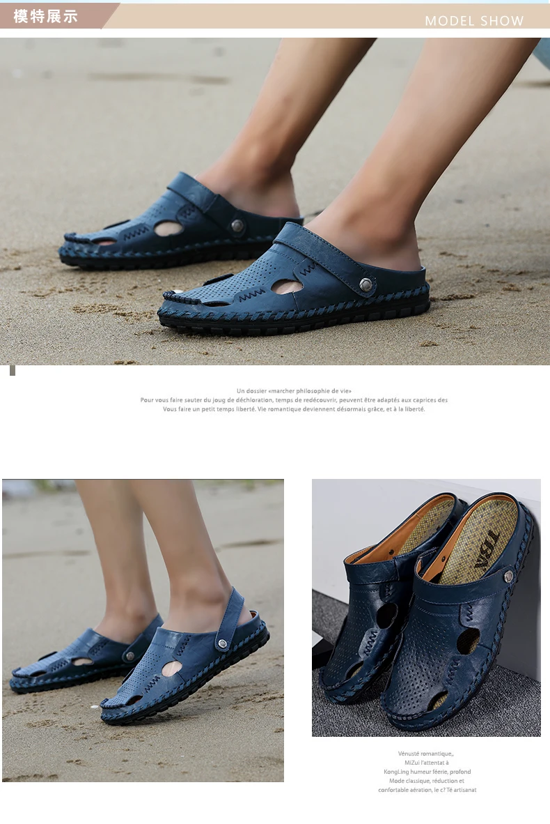 Men Summer Sandals Genuine Leather Beach Trekking High Quality Hombre Fashion Comfortable Outdoor Beach Rome Slippers Size38-44