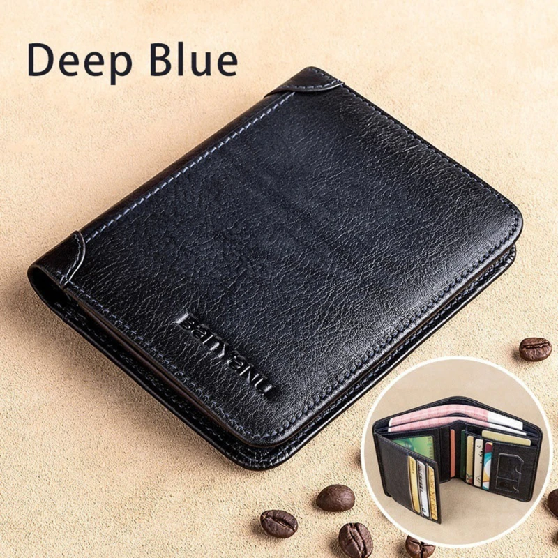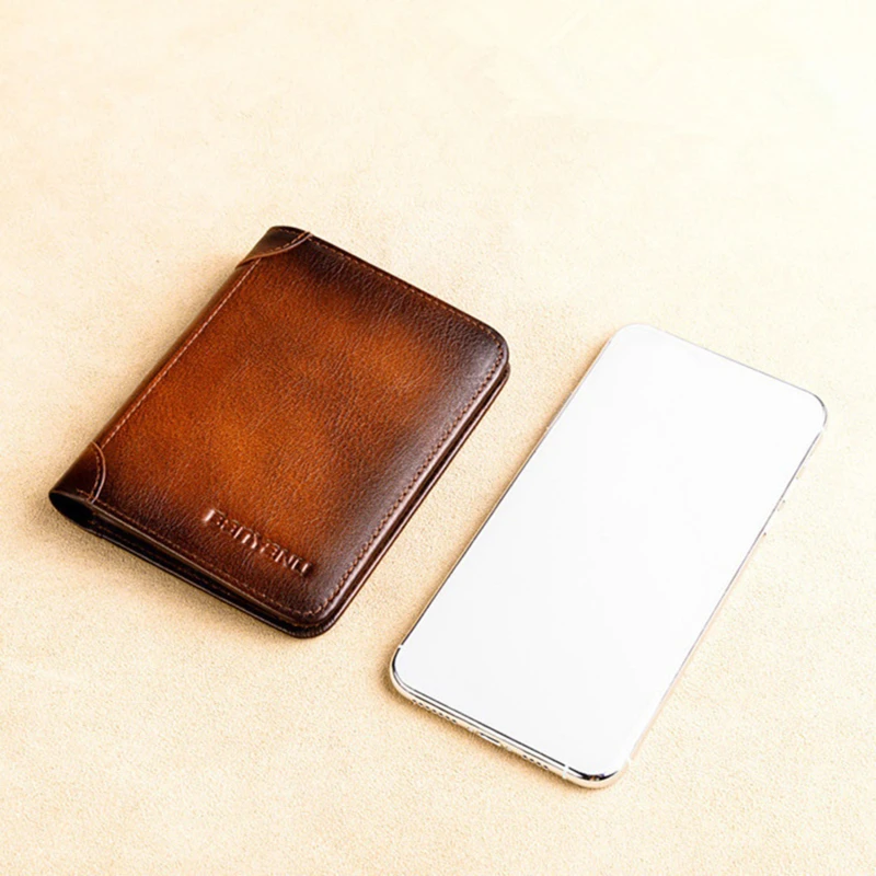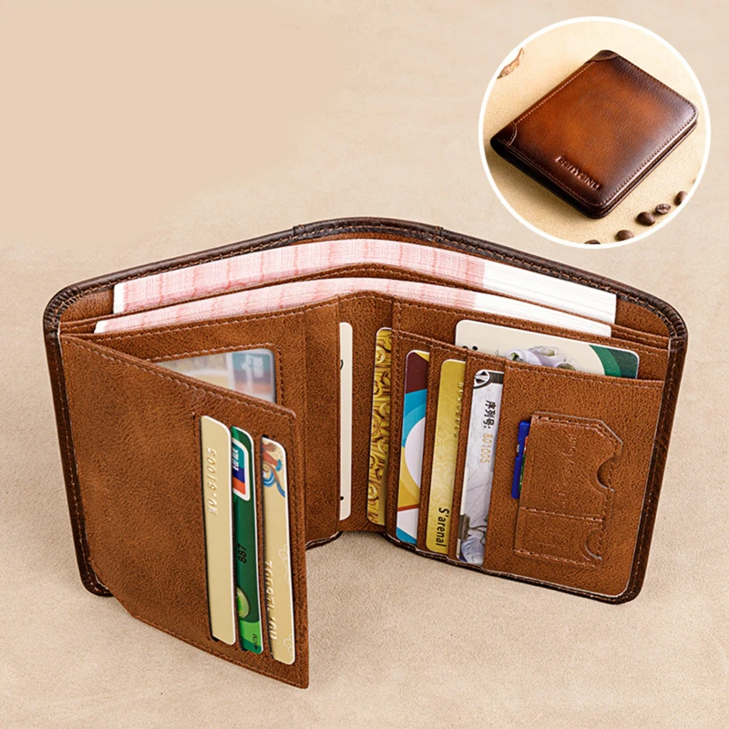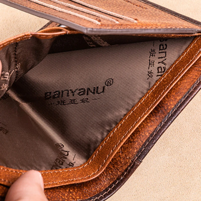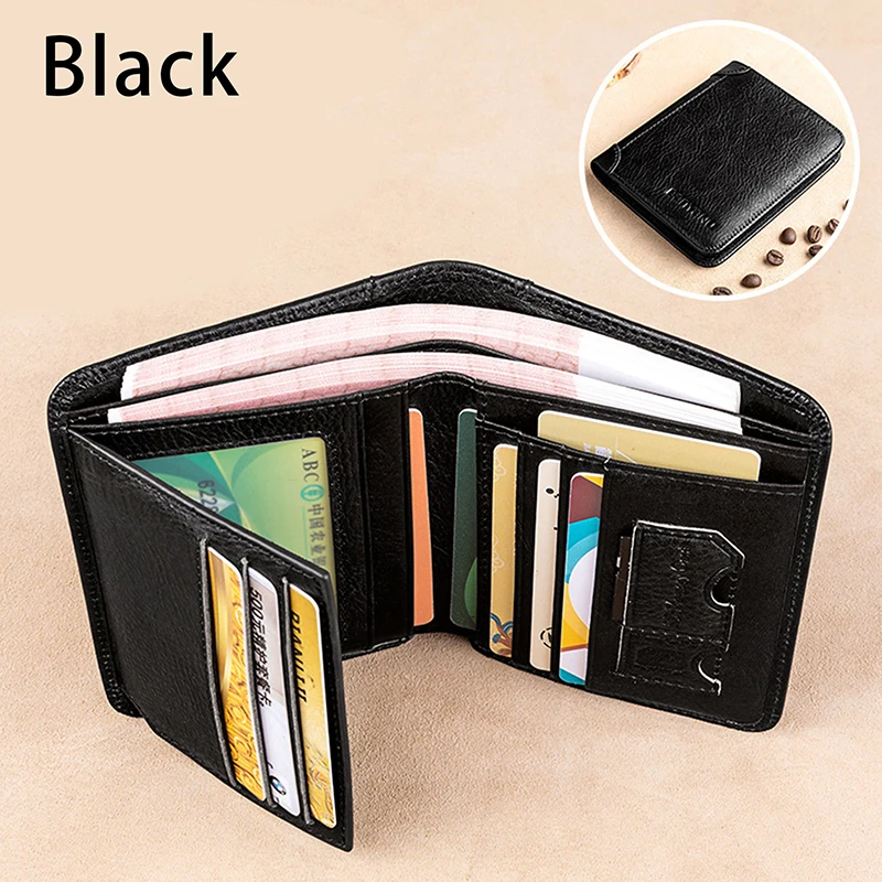 Men Wallet Genuine Leather Trifold Wallet Vintage Thin Short Multi Function ID Credit Card Holder Male Purse Money Small bag