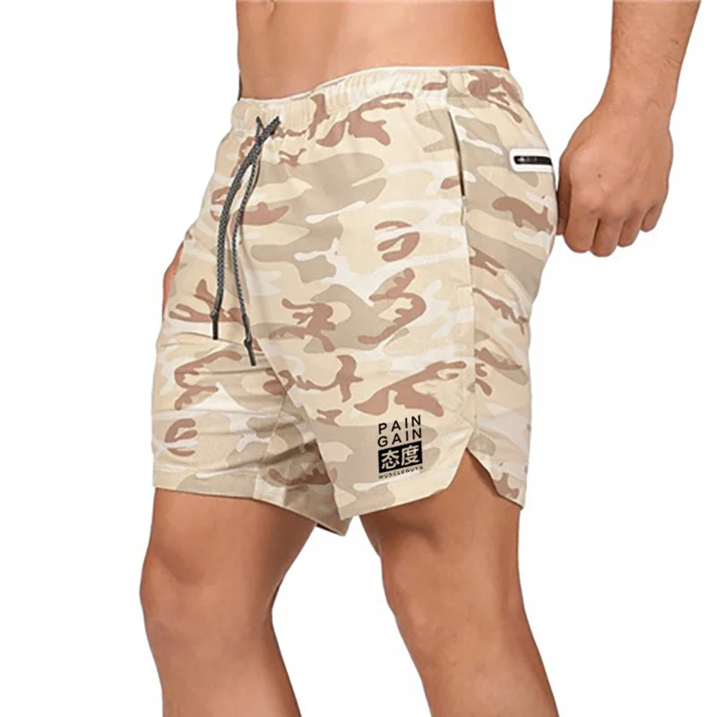 Mens 2 in 1 Gyms Shorts Men Sports Fitness Shorts Mesh Quick Drying Security Pockets Bodybuilding Training Joggers Short Pants