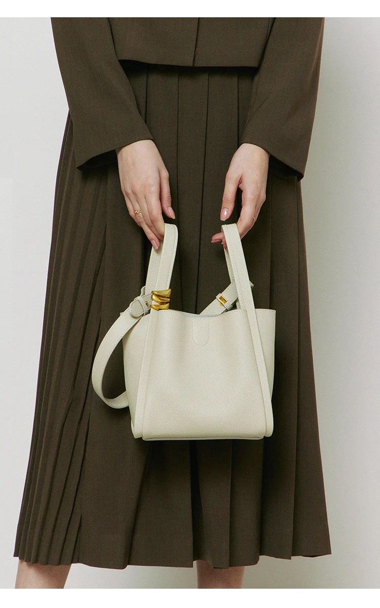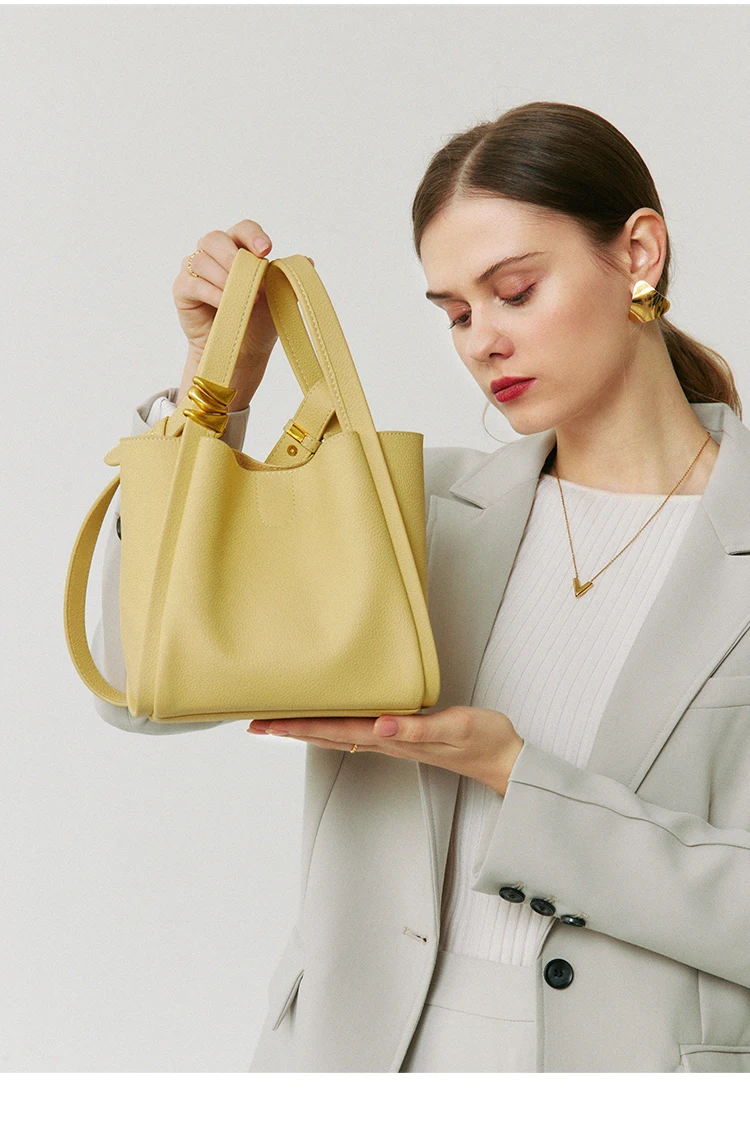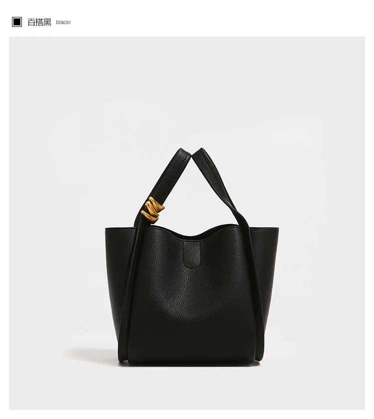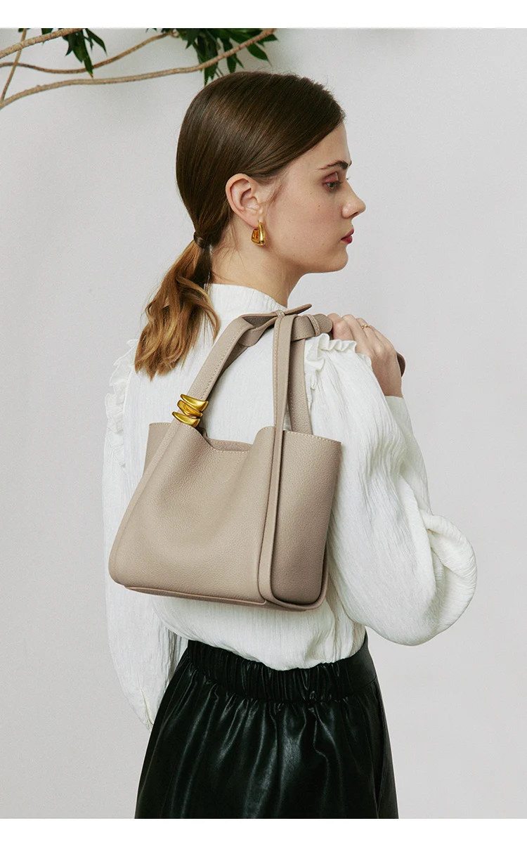 MS Fashion Women Genuine Leather Bucket Luxury Designer Bag Unique Purses and Handbags Soft Cowhide Shoulder Daily Bag 2022 New