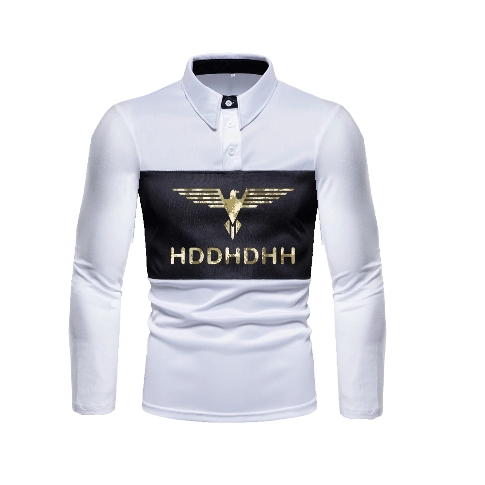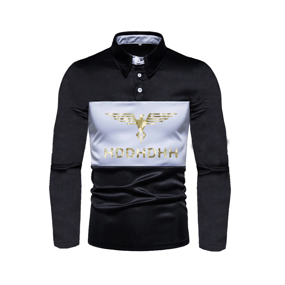 New Fashion Color Contrast Mens Polo Shirt Long Sleeve Casual Tops Men Clothing