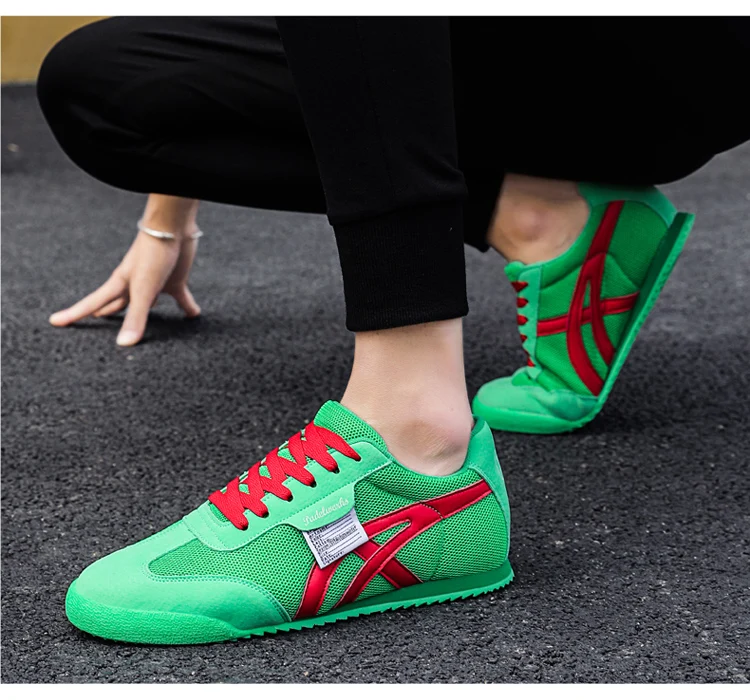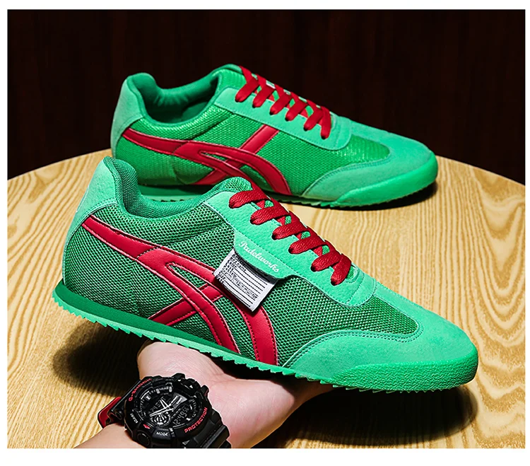 New Fashion Green Sneakers Men Designer Gym Trainers Mesh Breathable Running Shoes Men Vintage Walking Canvas Sneaker Men Flats