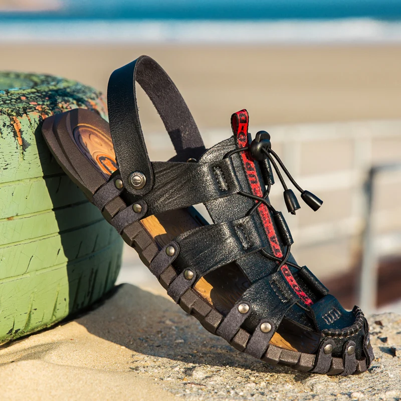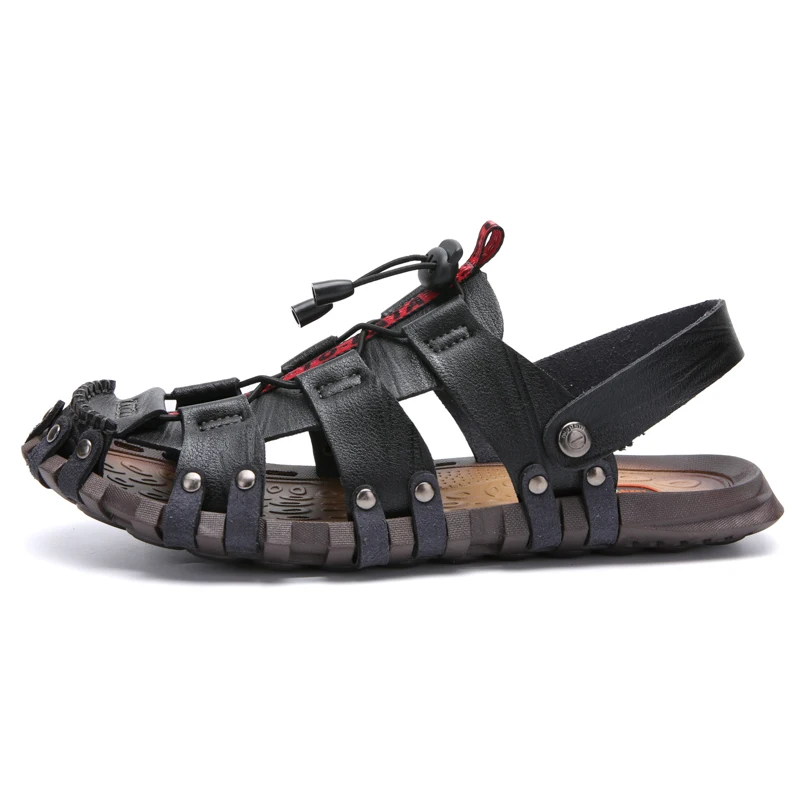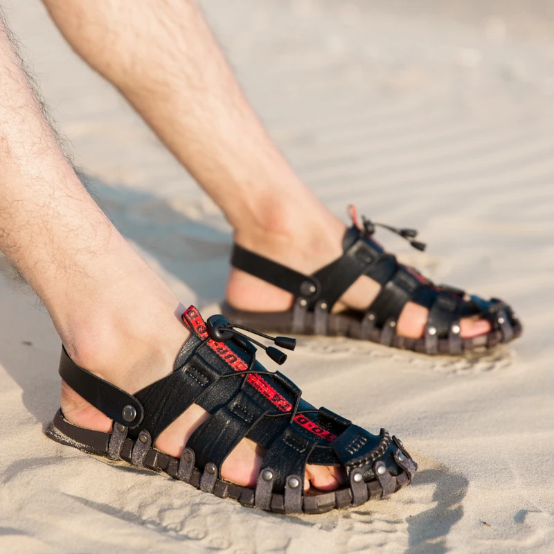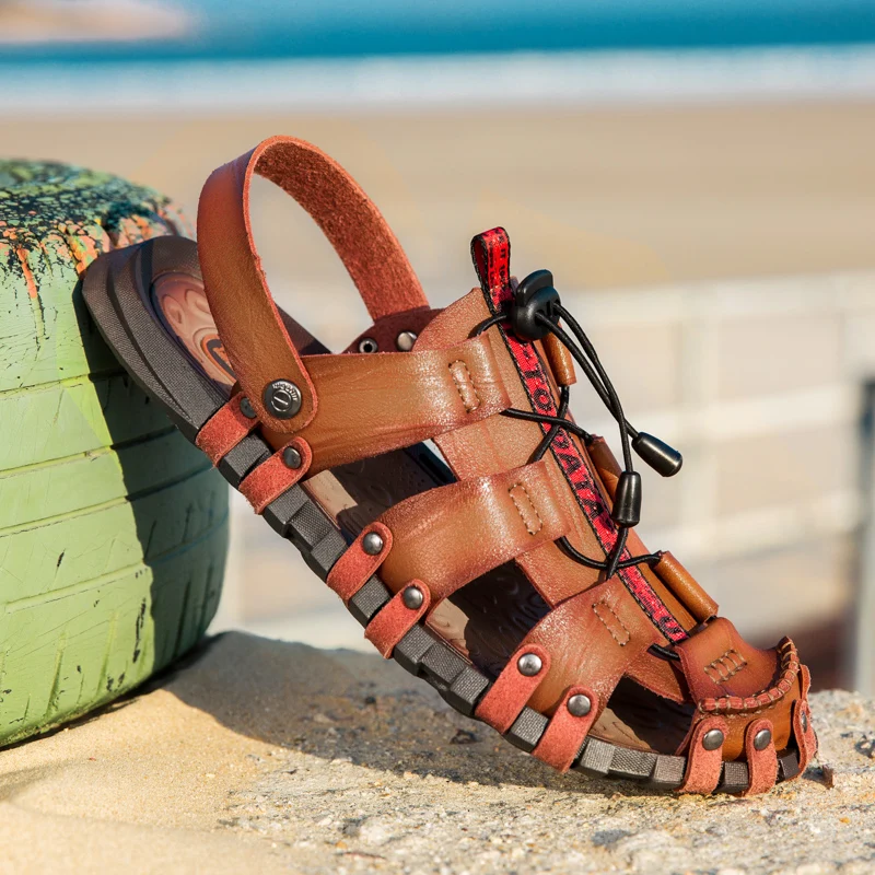 New Men Leather Sandals Baotou Slippers 2023 Summer Outdoor Fashion Casual Sandals Non Slip Outdoor Beach Vacation Sandals