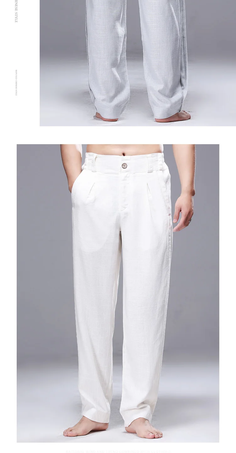 New Men Pants Summer Lightweight Breathable Cotton Linen Casual Pants Mens Solid Straight Harem Pants Fashion Loose Trousers Men