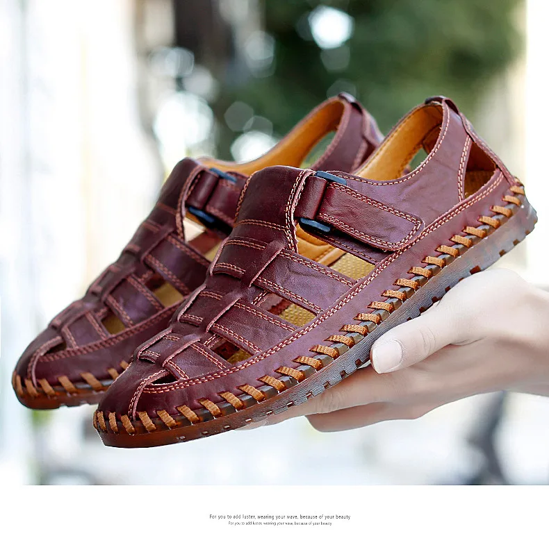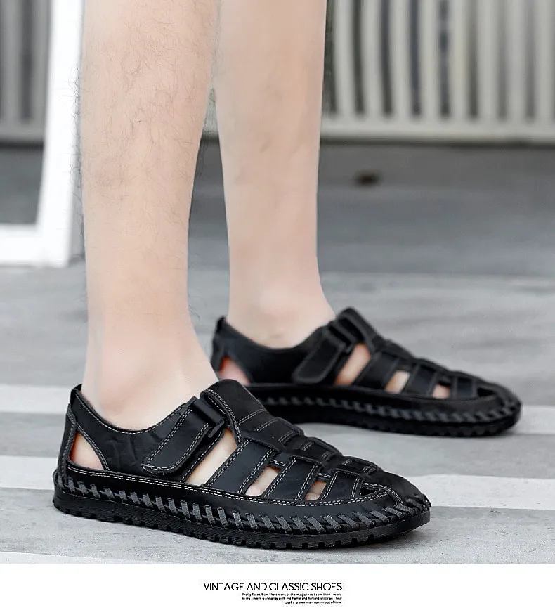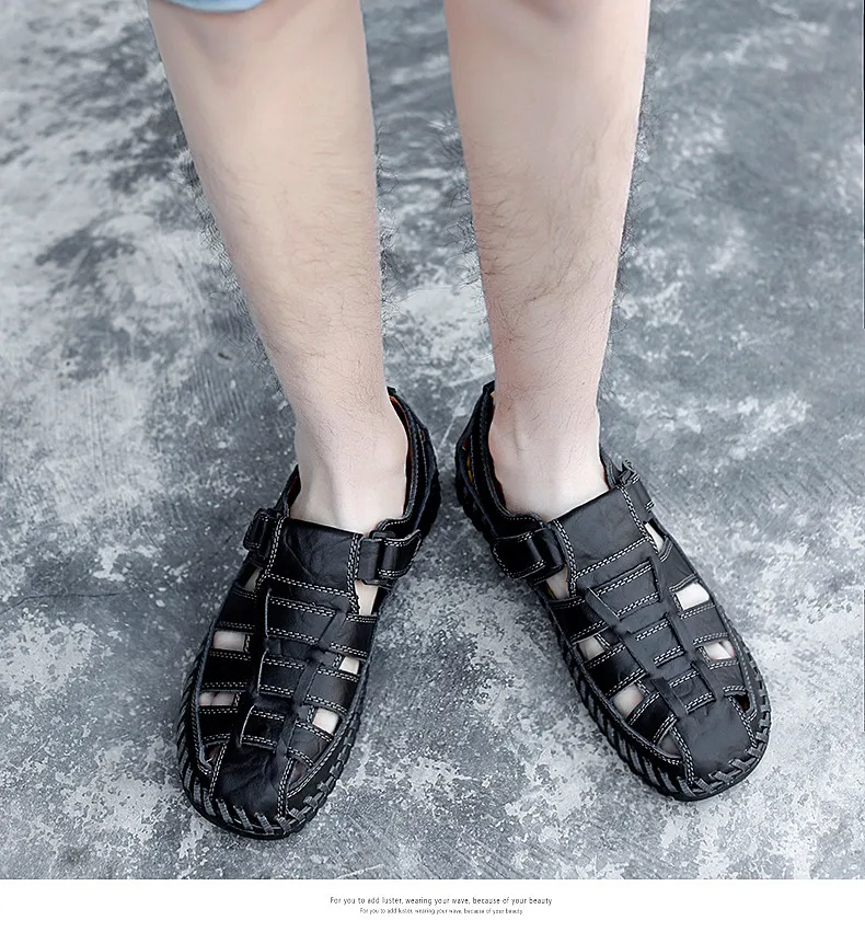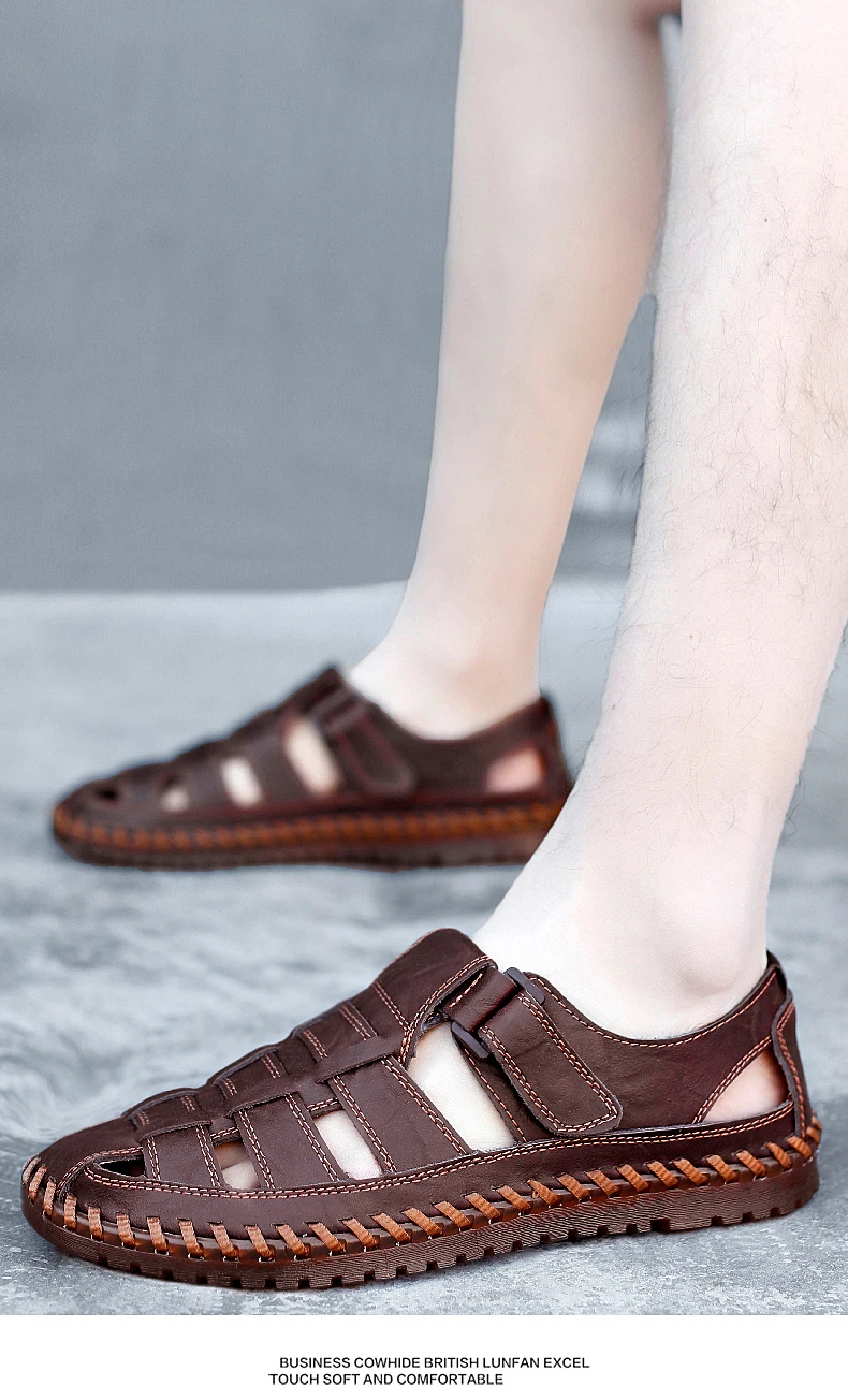 New Summer Genuine Leather Roman Men's Sandals Business Casual Shoes Outdoor Beach Wading Slippers Men's Shoes Big Size 38-48