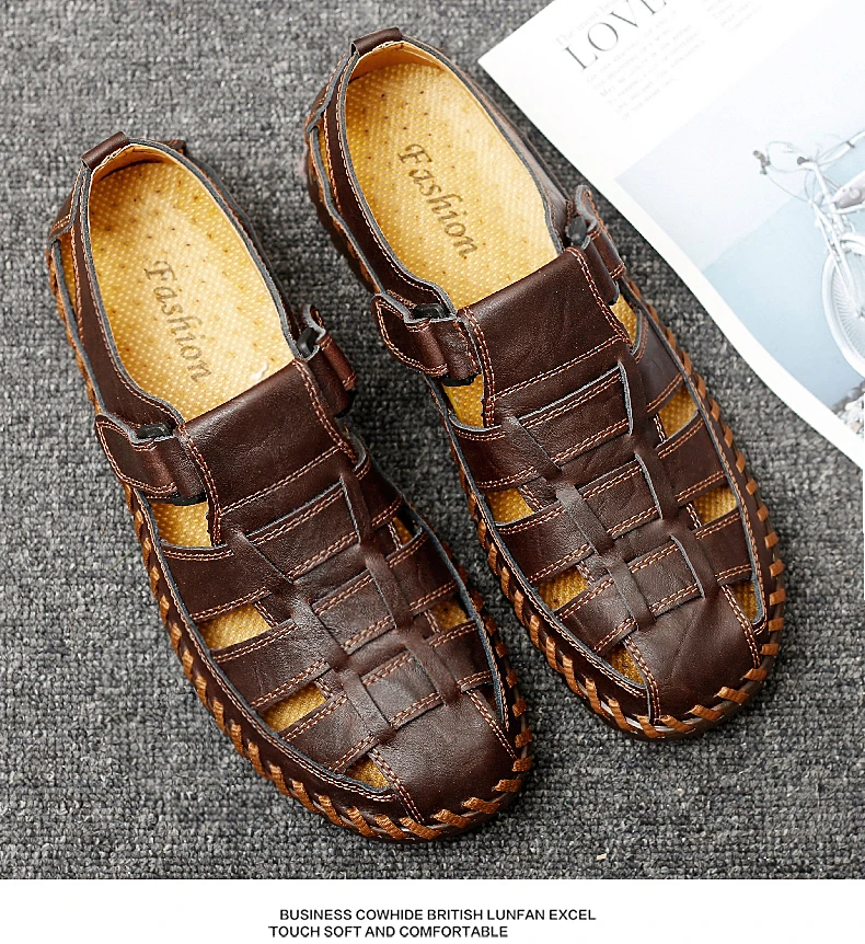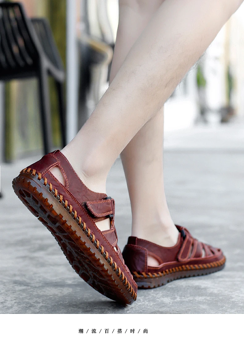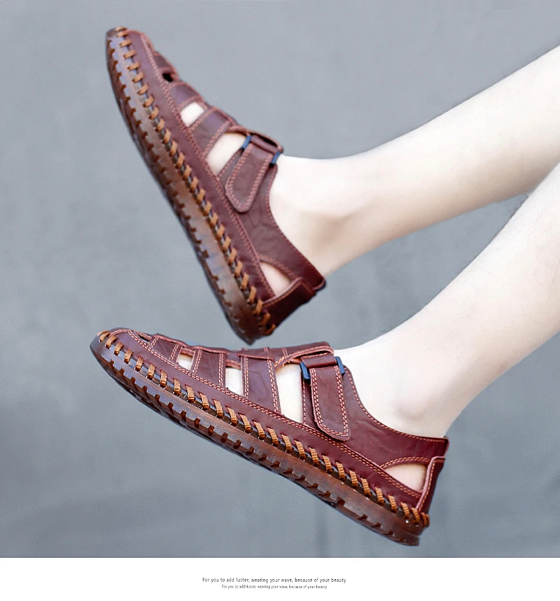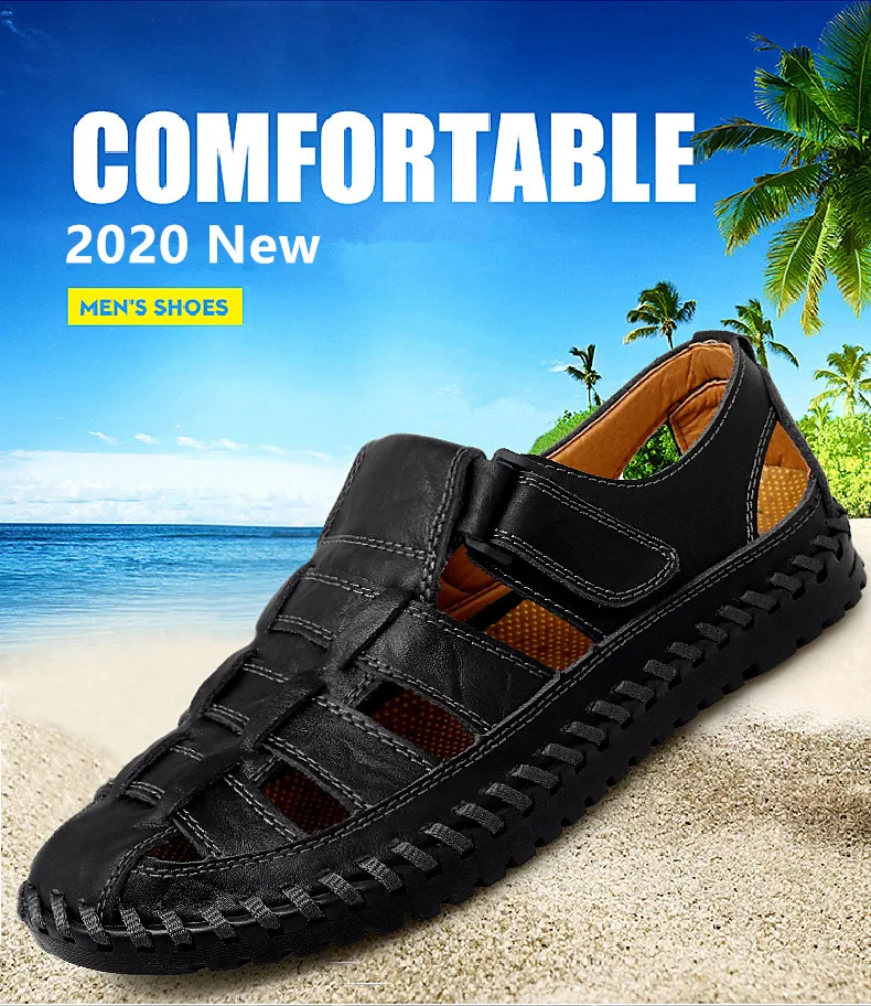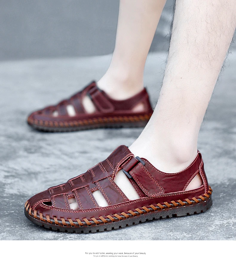 New Summer Genuine Leather Roman Men's Sandals Business Casual Shoes Outdoor Beach Wading Slippers Men's Shoes Big Size 38-48