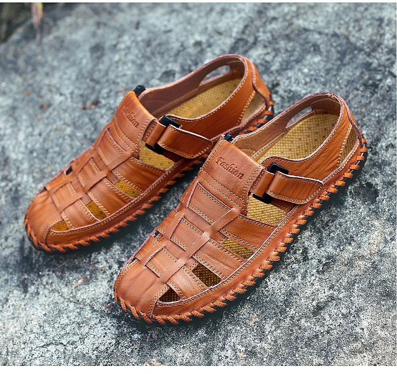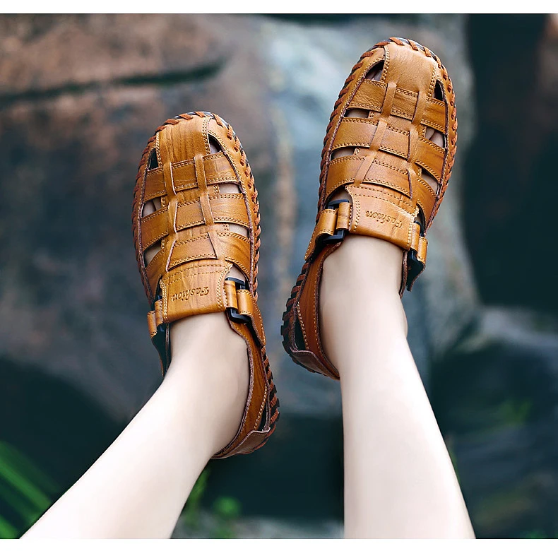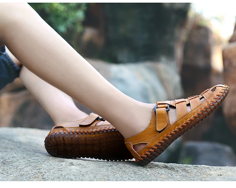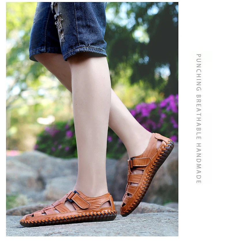 New Summer Men Soft Non-slip Classic Casual Shoes Genuine Leather Cowhide Outdoor Beach Water Trekking Breathable Quality Hiking